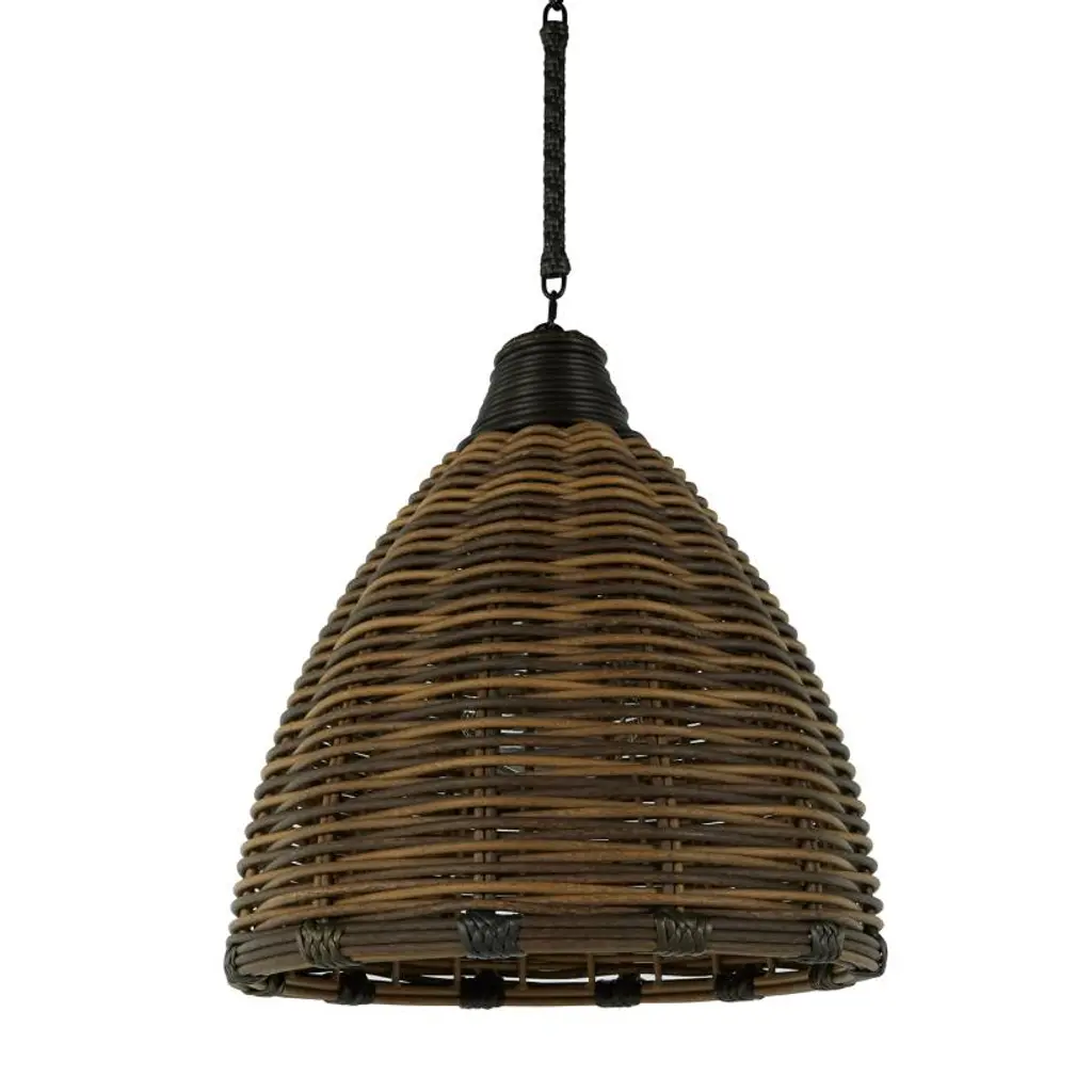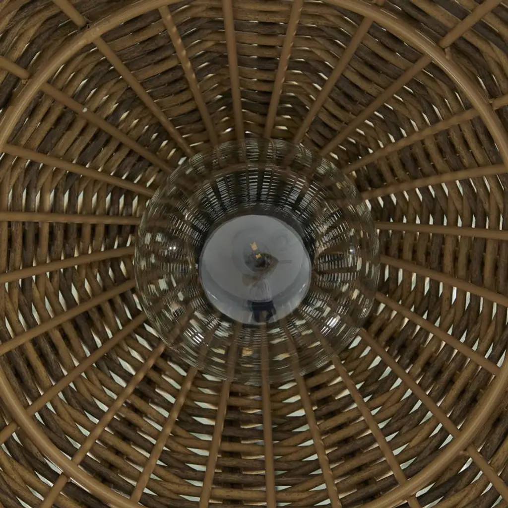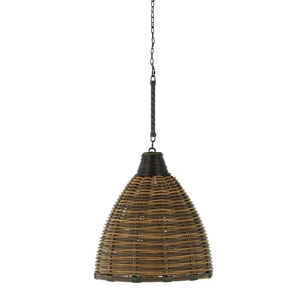 Perfectly sized to fit well in so many settings. The bell shaped shade fit is woven with light and dark resin wicker.