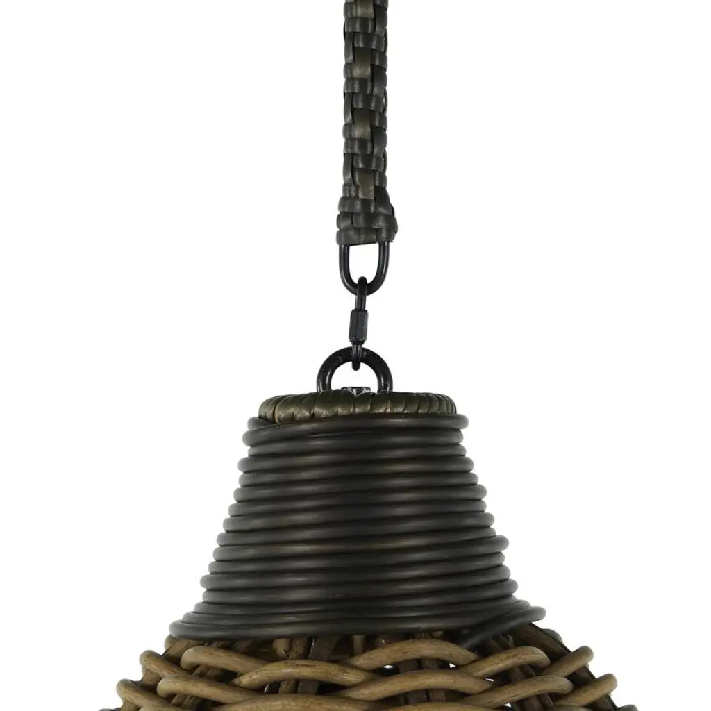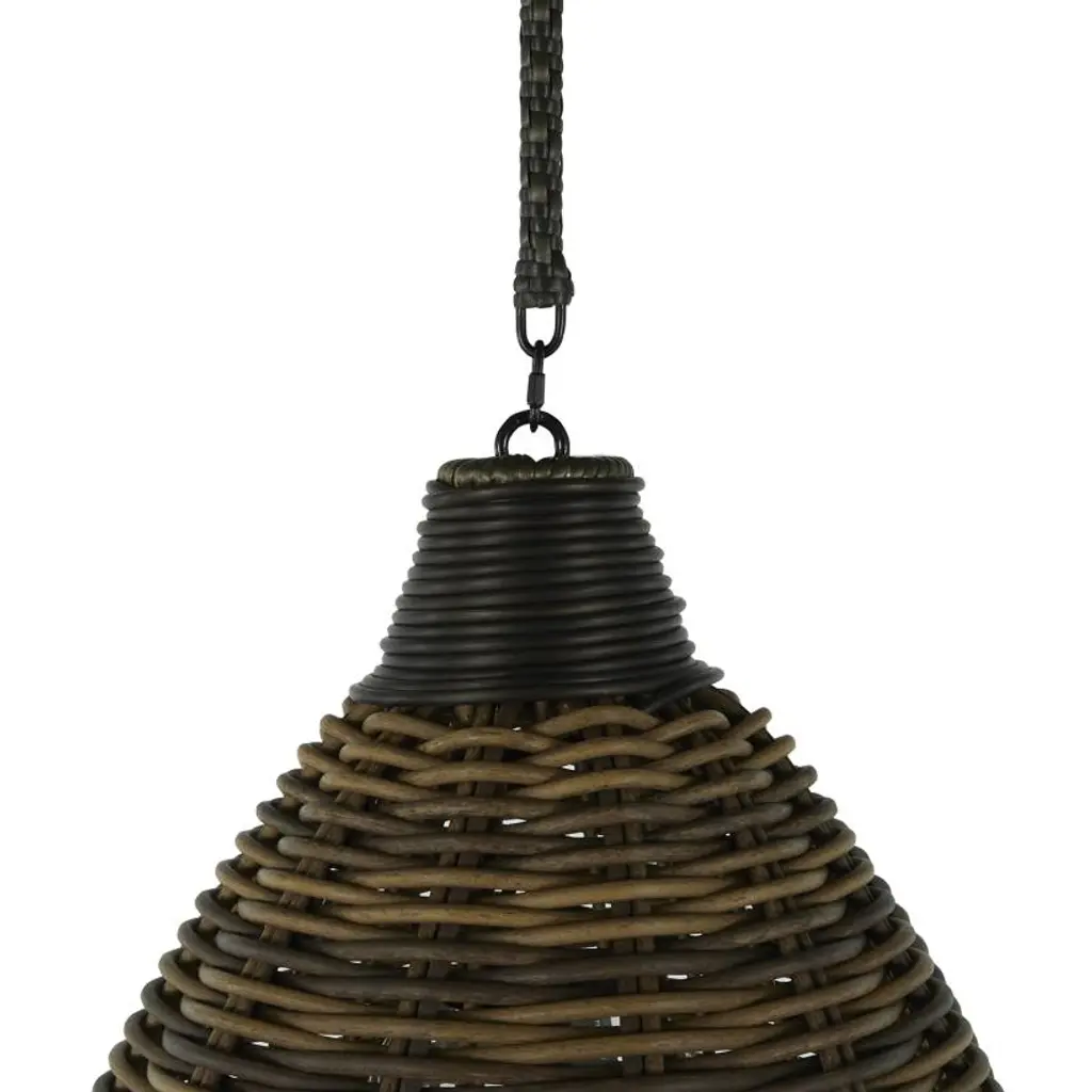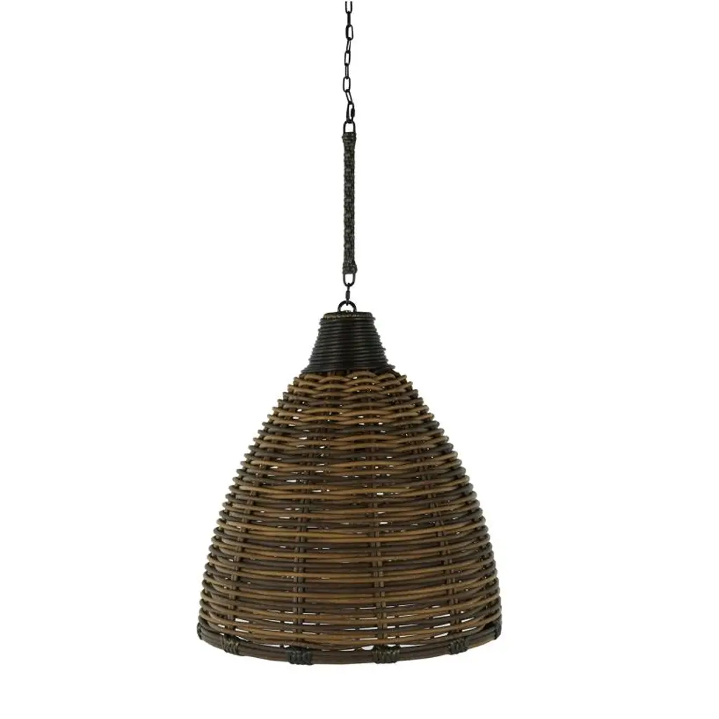 Perfectly sized to fit well in so many settings. The bell shaped shade fit is woven with light and dark resin wicker.