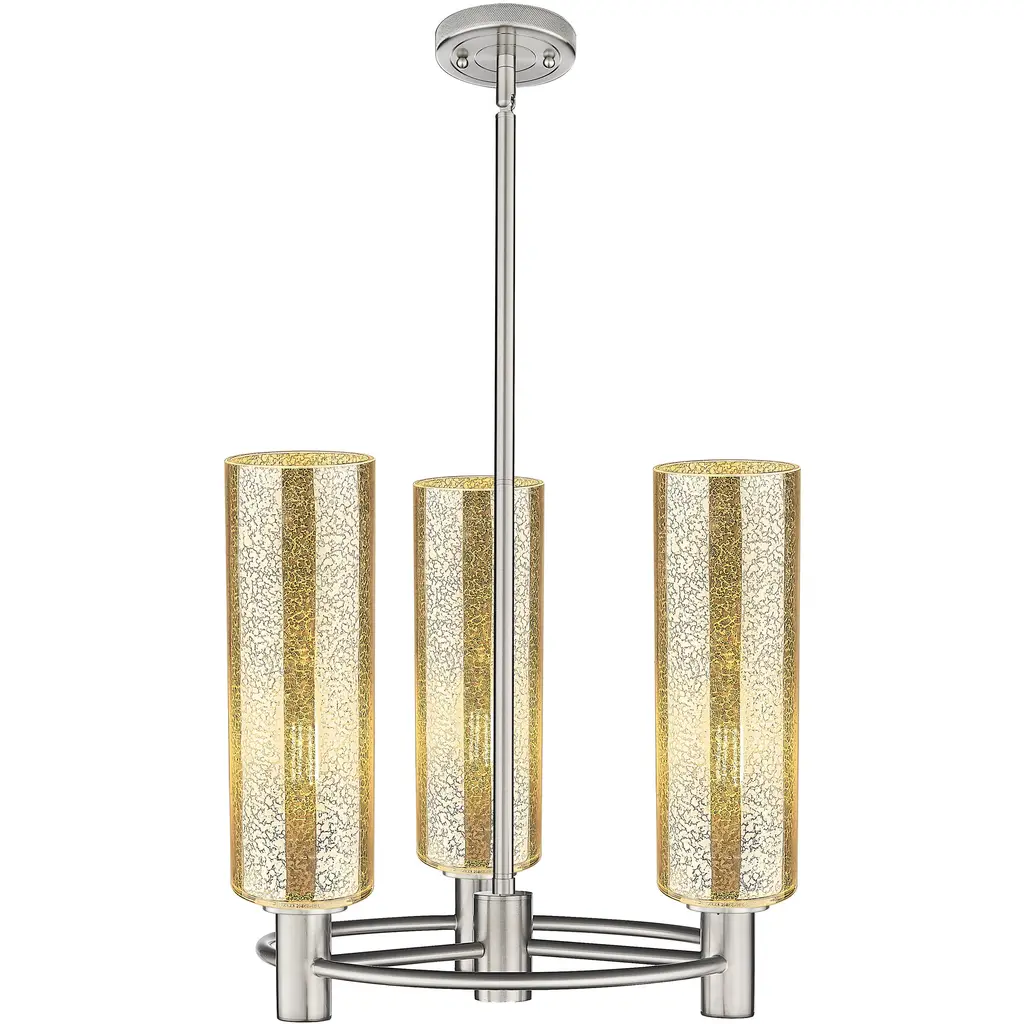 Preston 3 Light 17.63 Inch Satin Nickel Chandelier Ceiling Light In Mercury Glass