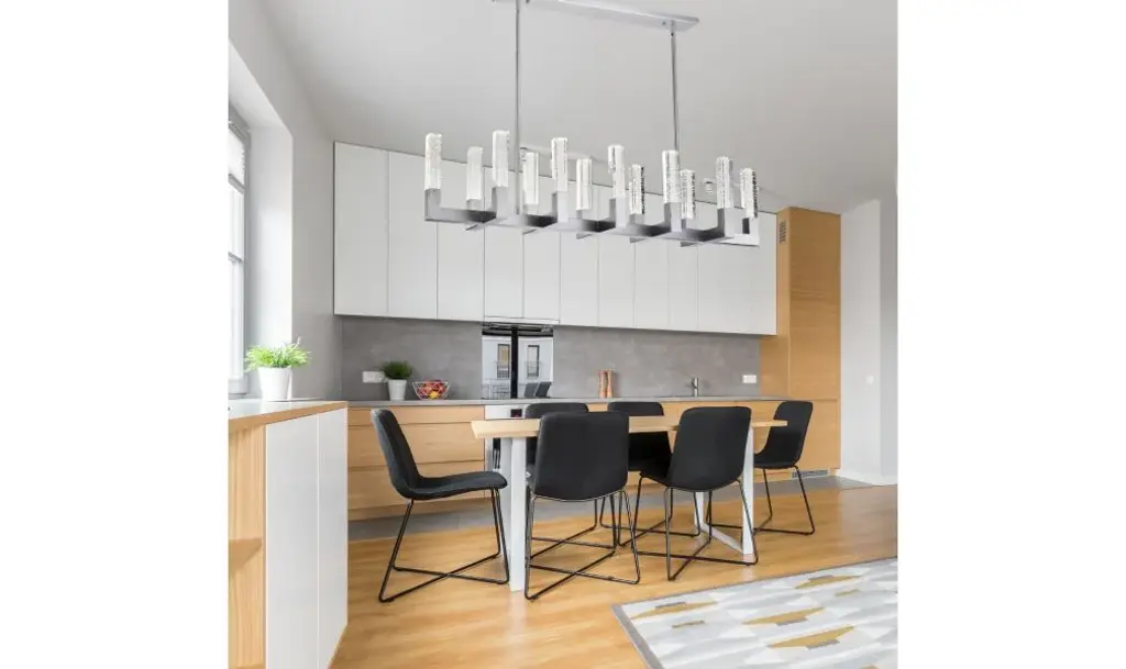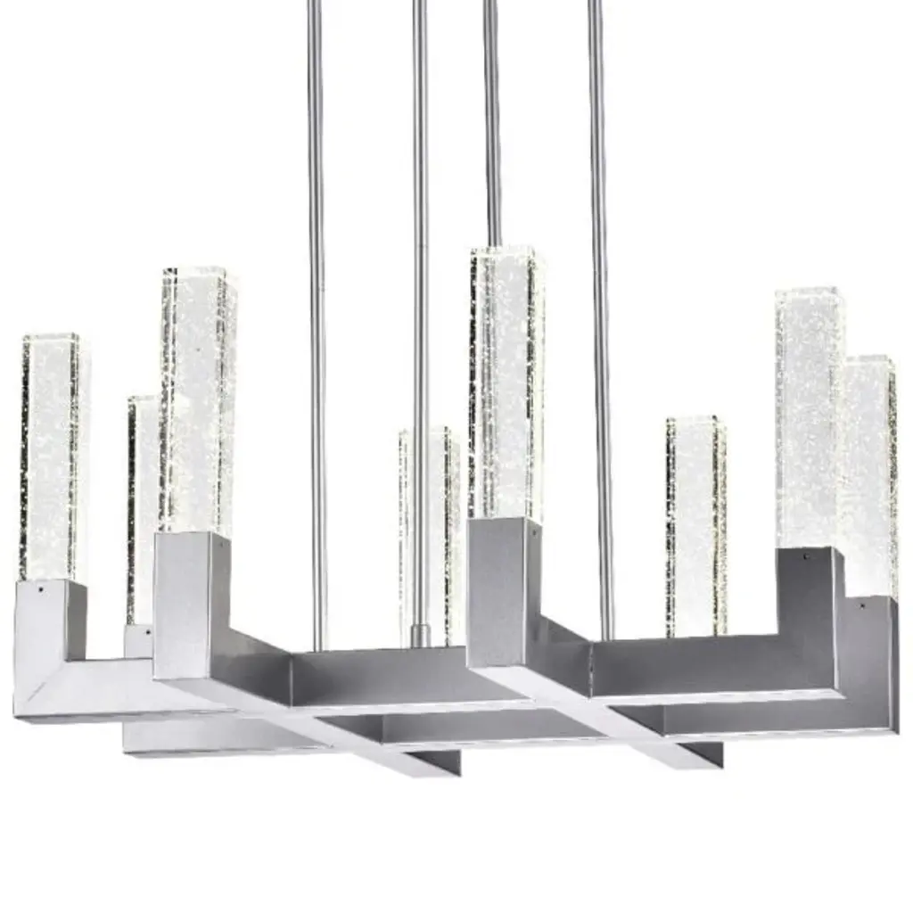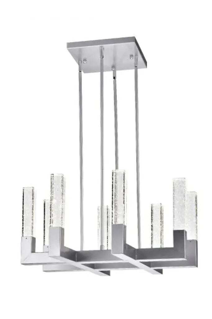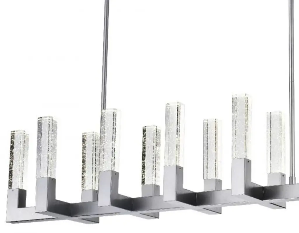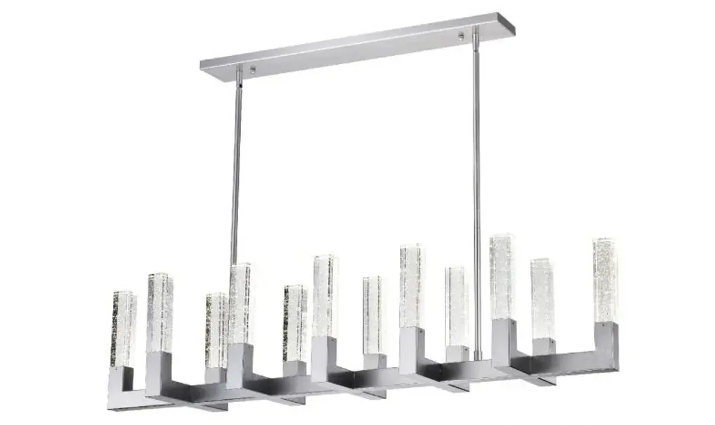 The 12 Light Rectangular Crystal Dianyi LED Chandelier is a stunning and contemporary chandelier. It has a sleek silver metal frame that is enhanced with ravishing crystals that produce lights. This is a perfect chandelier to have above a dining room, in an entryway or in a living room. This fixture comes with a rectangular canopy that measures 12"W X 24"L and 1.5"in height. This chandelier also has adjustable height rods that allow it to be a versatile product that suits the different hanging heights that your space may need. The chandelier comes with durable and dimmable LED bulbs .