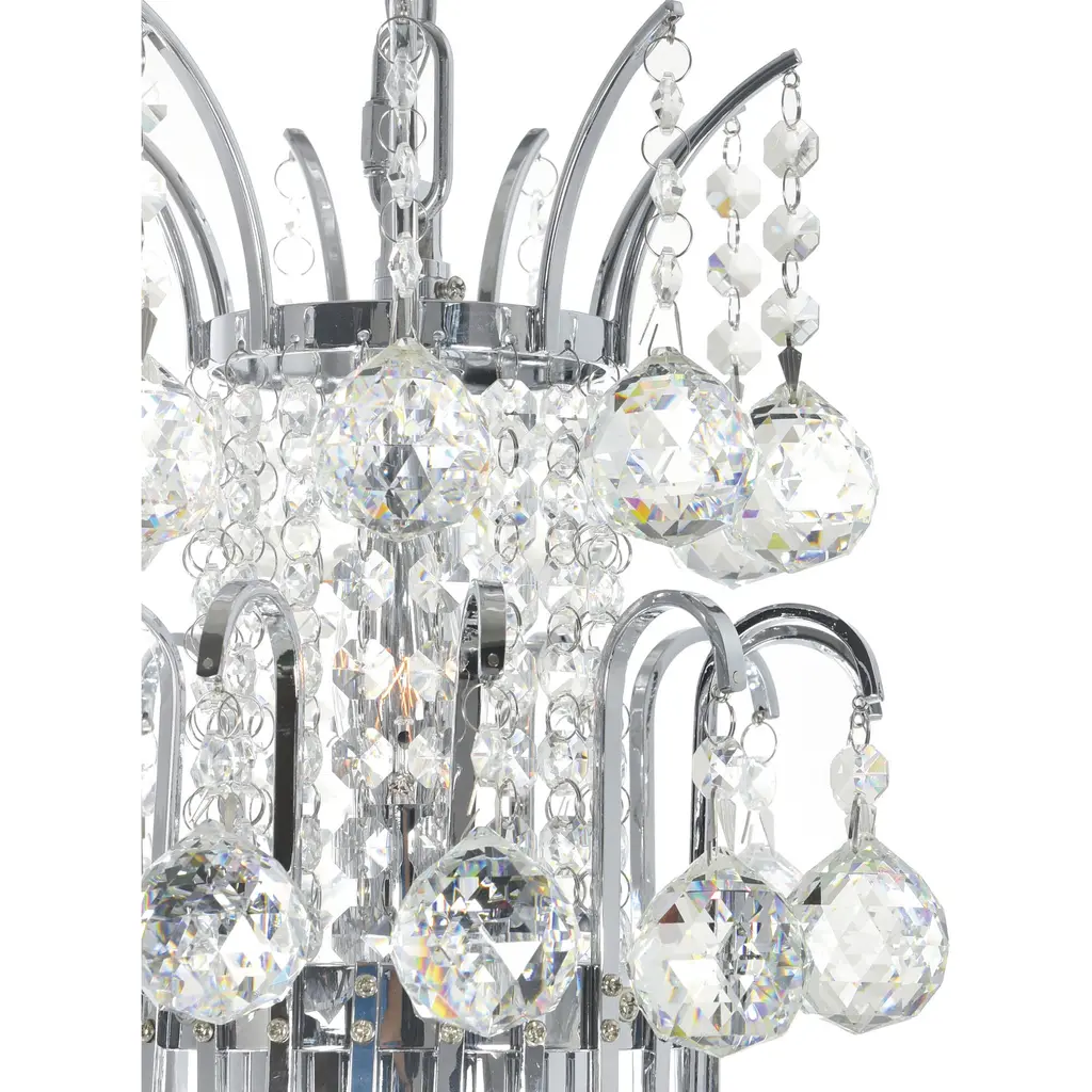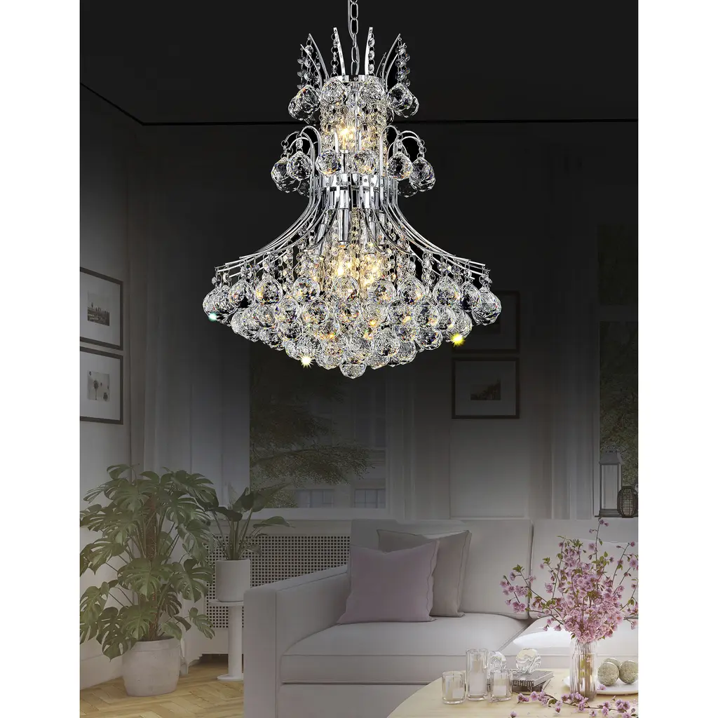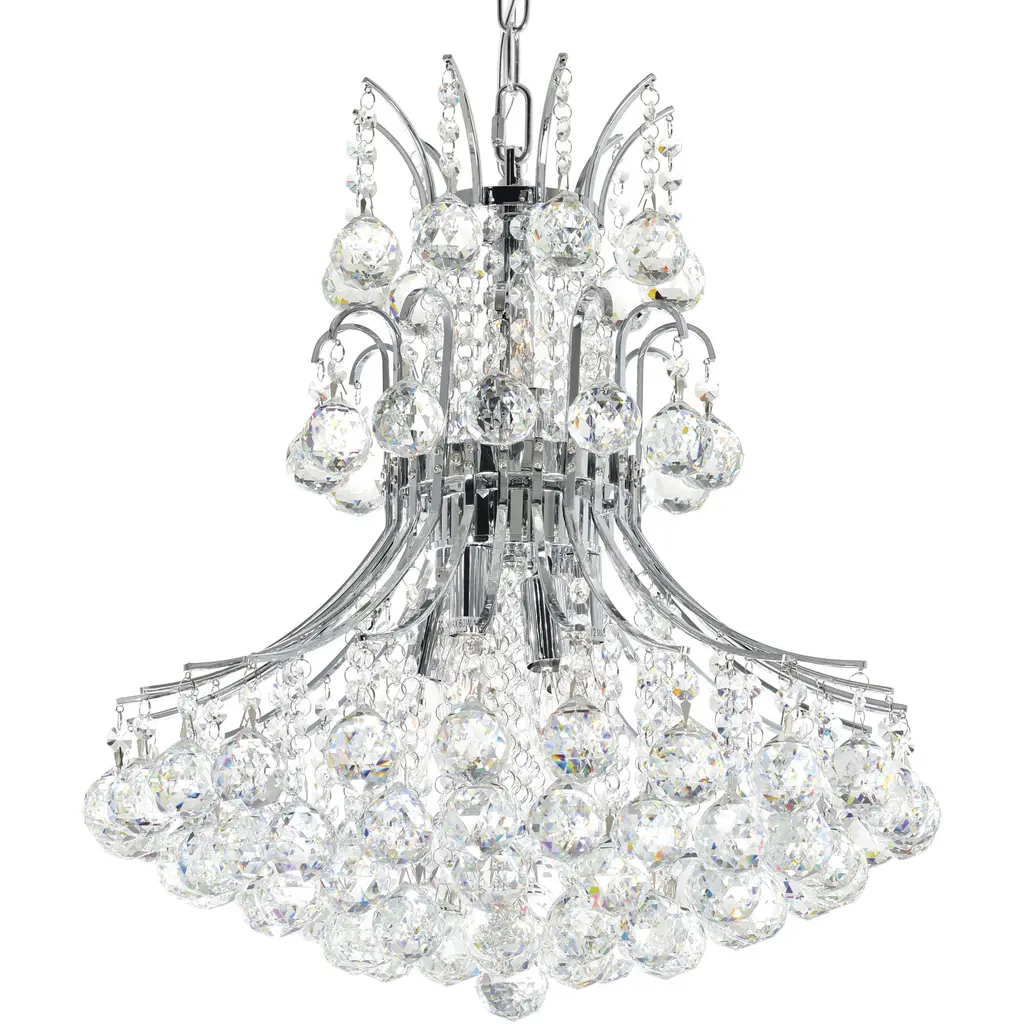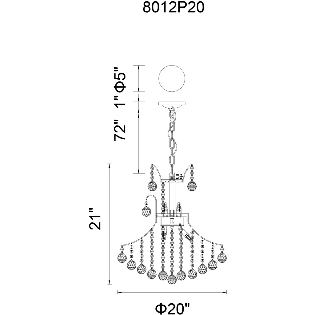 Replacing your existing living room lighting with the Princess 8 Light Chandelier is enough to make a big change in your space. This showy down chandelier measures 21 inches tall and 20 inches wide. It is designed with a chrome-finished metal frame in a graceful silhouette adorned by dangling faceted crystal balls. This light source will make your ceiling gleam perfect for when you want to give your home a more upscale vibe.