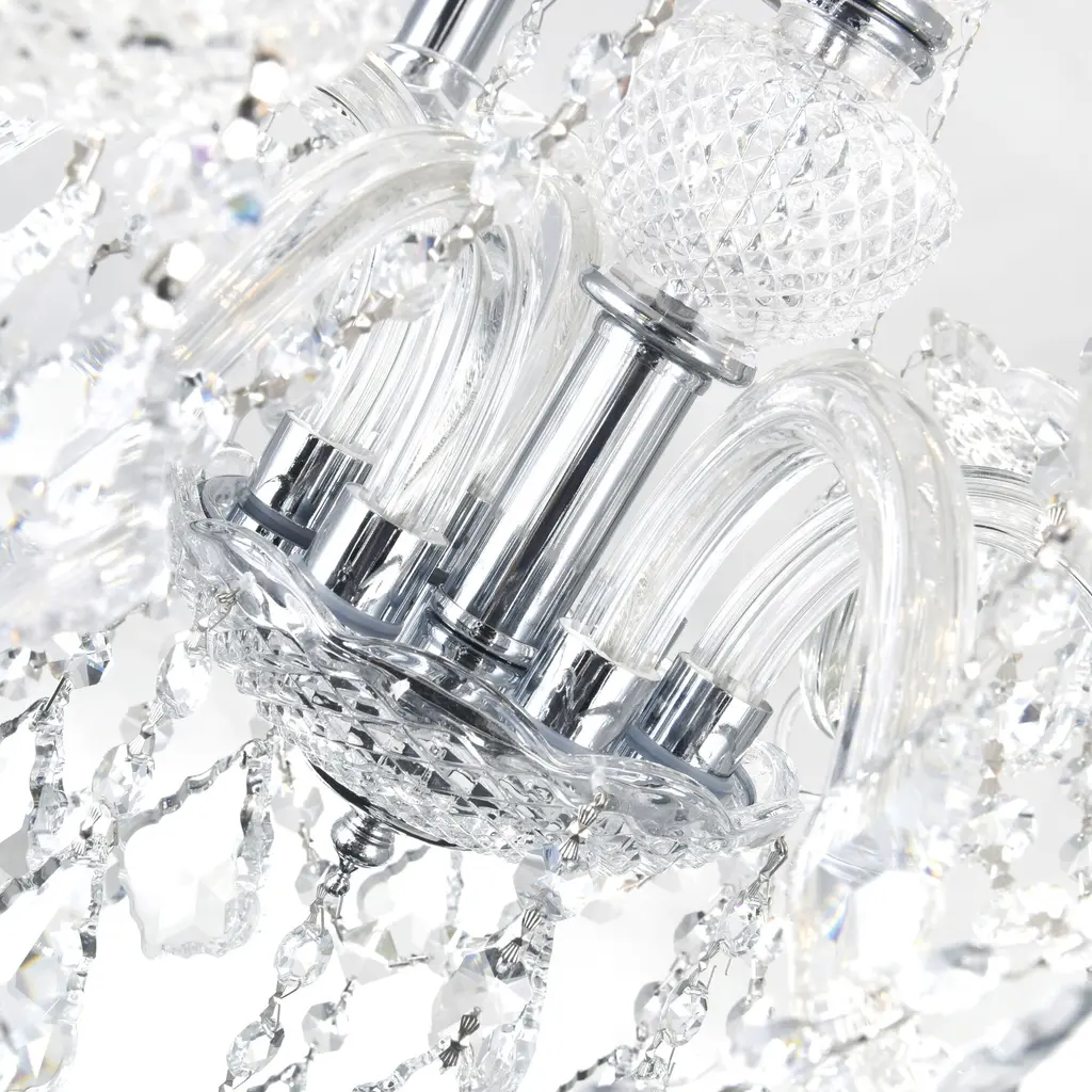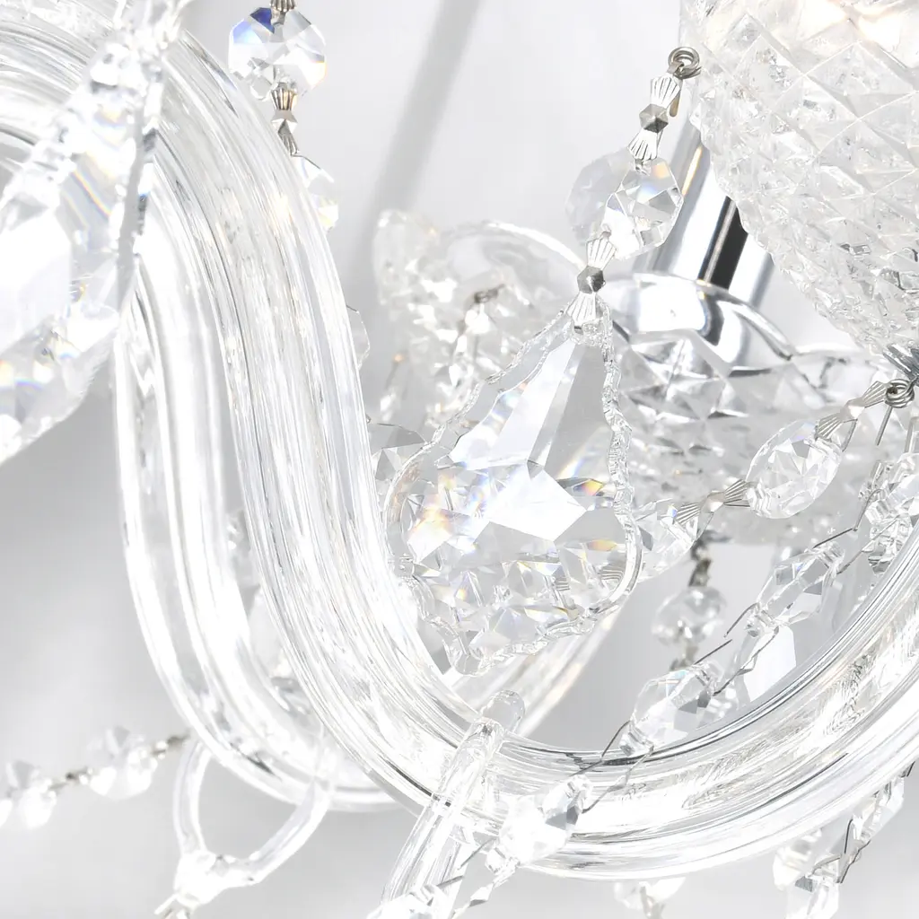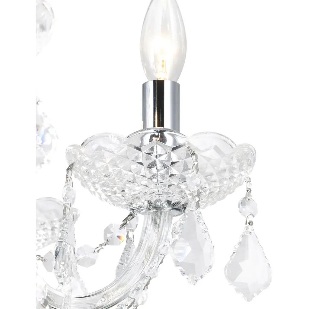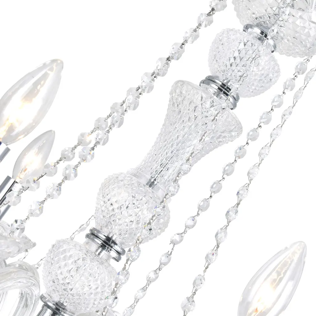 The 24" Princeton 6 Light Chandelier is a statement-making light source with dramatic design. The ornate candelabra silhouette is further enhanced by the presence of draping strings of crystals. Finished with candelabra bulbs that emit a soft and warm glow, this down chandelier will provide your space the perfect ambiance to gather your loved ones.