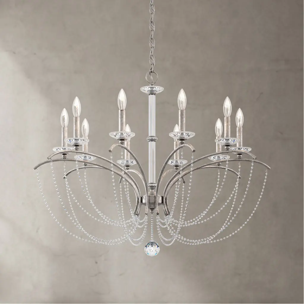 This 10 light Chandelier from the Priscilla collection by Schonbek will enhance your home with a perfect mix of form and function. The features include a Antique Silver finish applied by experts. This item qualifies for free shipping!