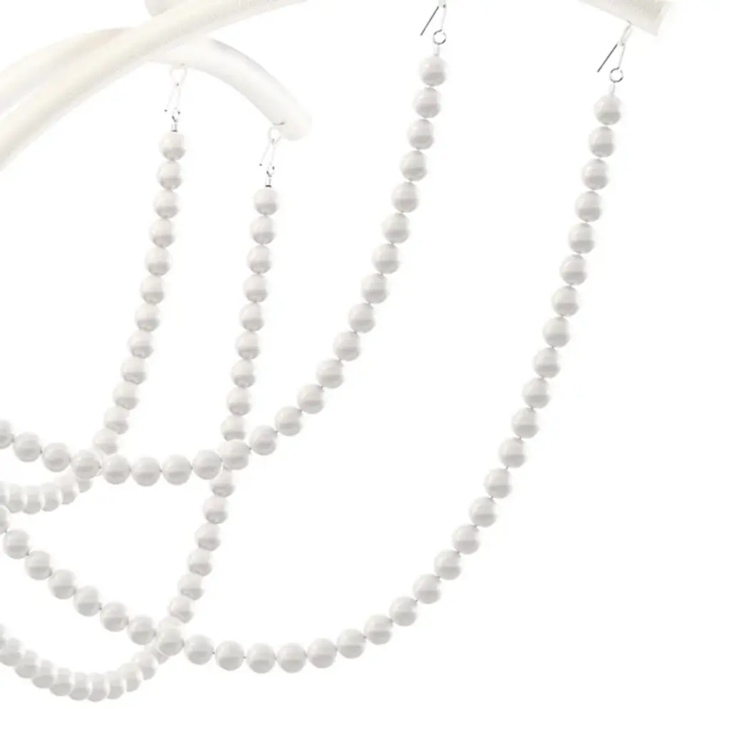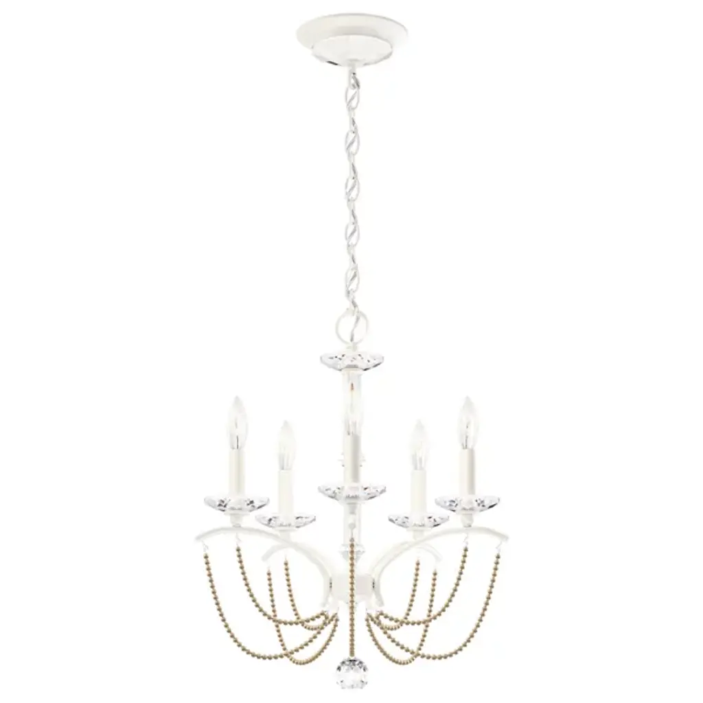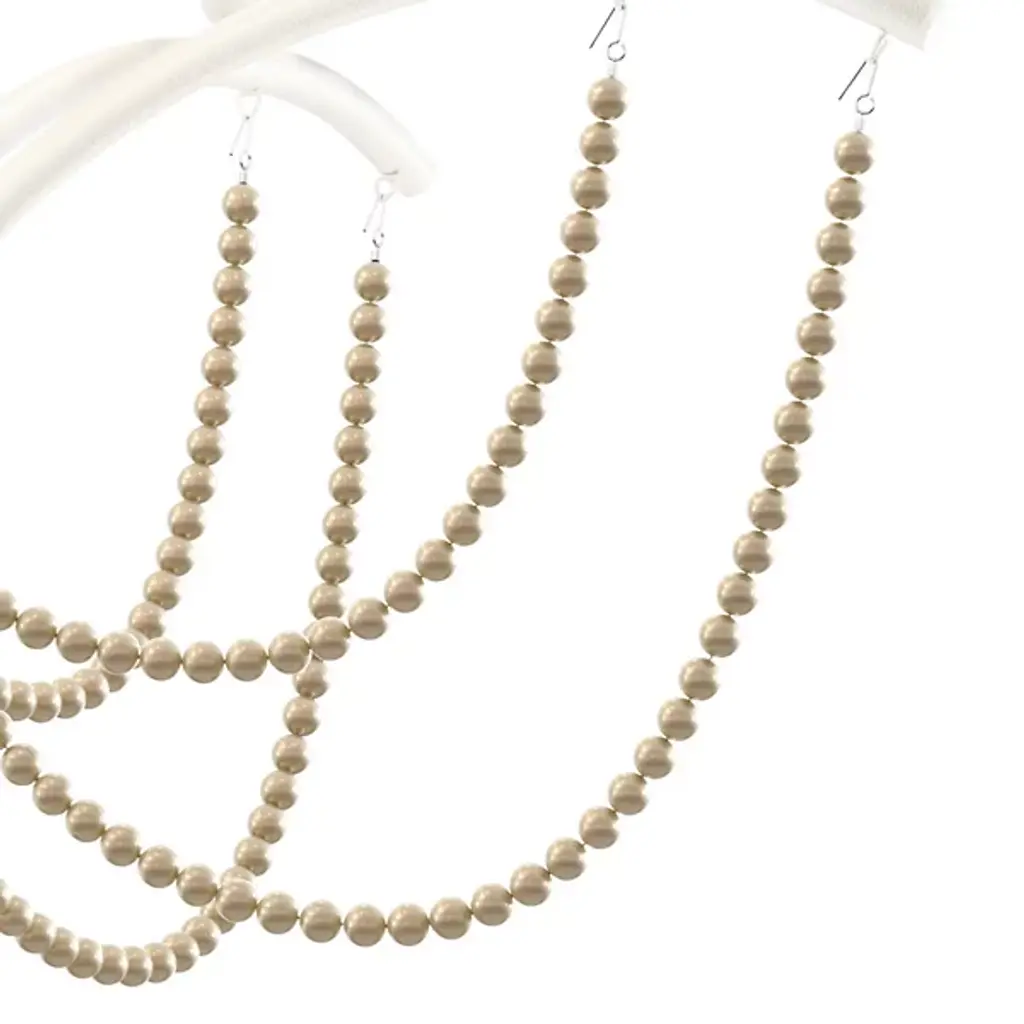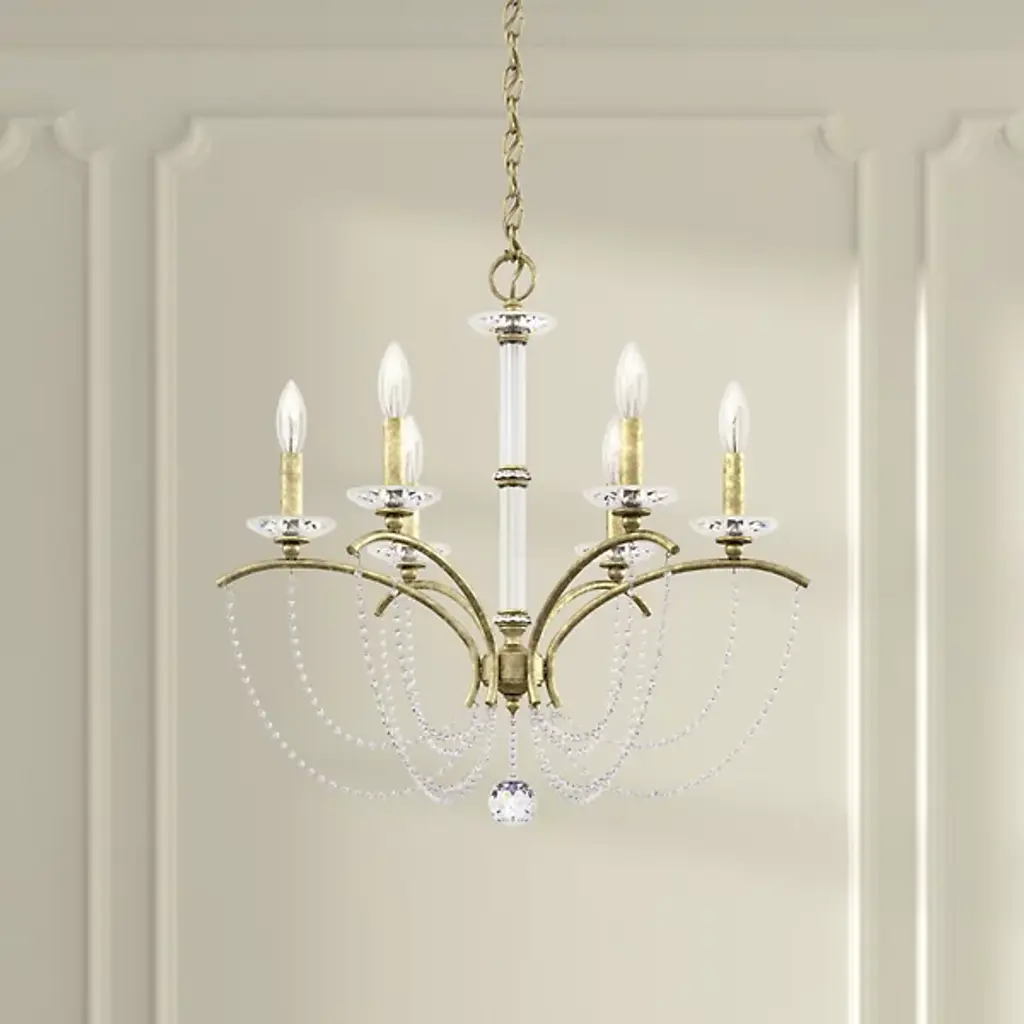 Bring a stately style to your inside spaces with the elegant and appealing lines of the Priscilla Chandelier from Schonbek Lighting. A stylish transitional piece with elegant retro lines, it relies on a two-tier canopy structure and single central chain to support a multi-armed structure of smooth steel below. The fixture employs a central column of Bohemian crystal while contrasting the steel structure with a set of clear crystal dish bobeches. Finally, elegant chains of translucent orb accents drape like pearls below each arm, lending the refinement of rich jewelry to an already captivating fixture.