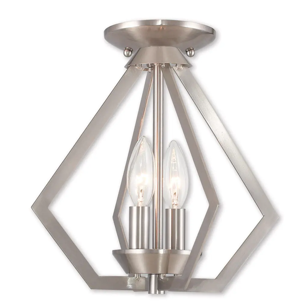 Prism 2 Light 11 Inch Brushed Nickel Convertible Mini Chandelier/ceiling Mount Ceiling Light