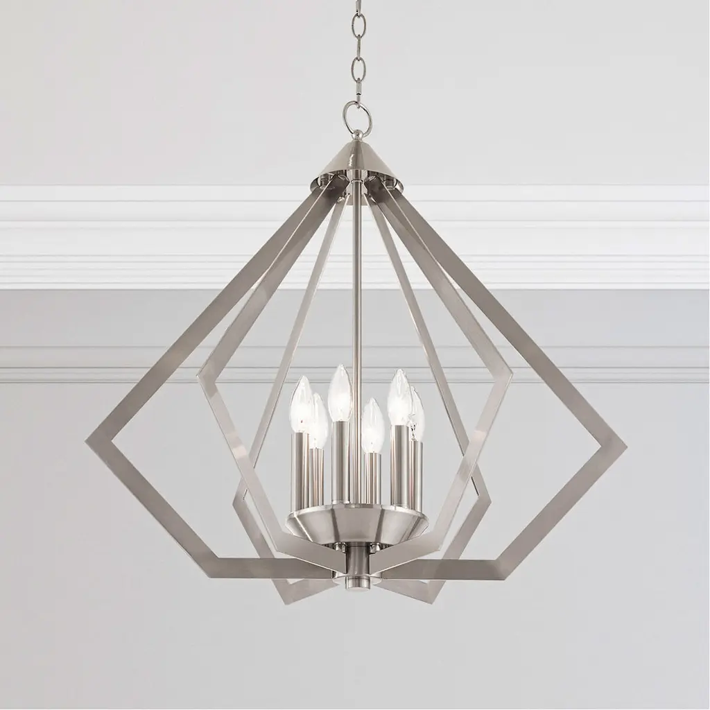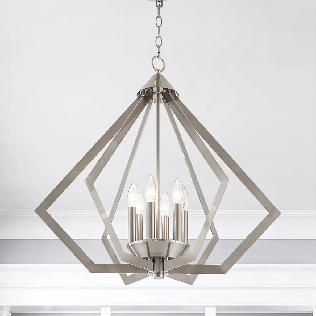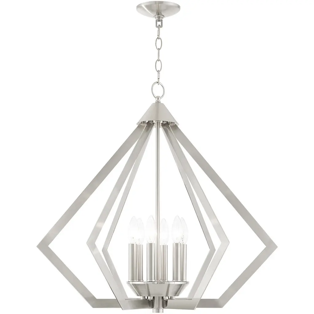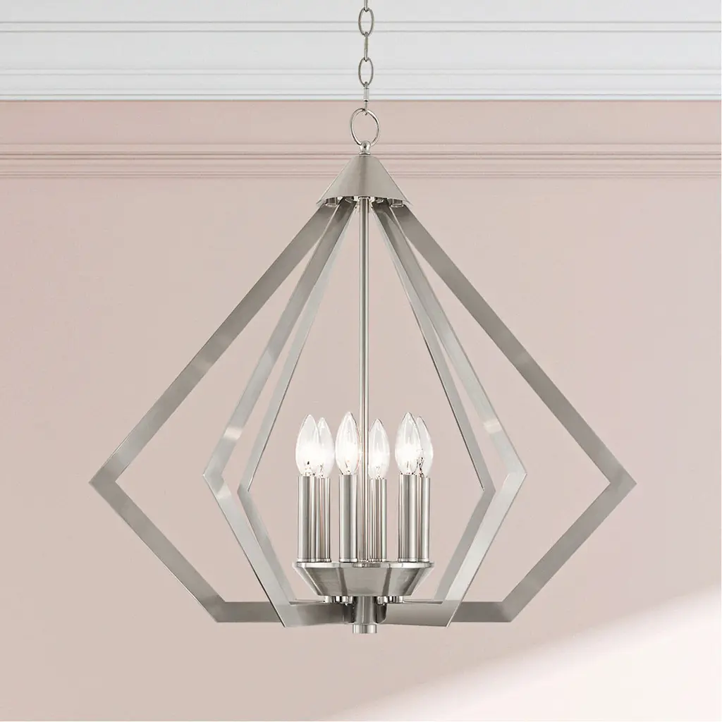 Prism 6 Light 26 Inch Brushed Nickel Chandelier Ceiling Light