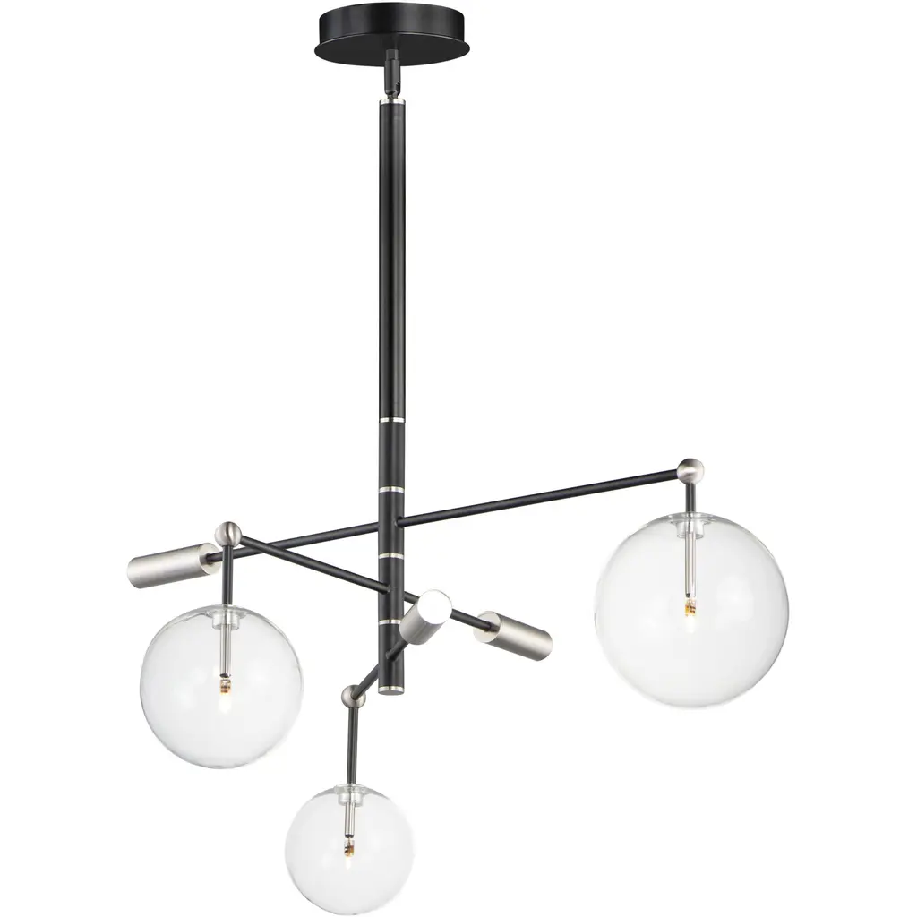 Introducing the Atwell Chandelier from Progress Lighting, a stunning addition to any modern or contemporary setting. Crafted from durable steel with a sleek matte black finish, this chandelier features long lines ending in clear glass globe shades, creating a modern aesthetic. The central stem is capped by clear glass, providing bright illumination from the halogen light source within. Measuring 28" in width and 5.87" in height, this chandelier is perfect for foyers, dining rooms, living rooms, bedrooms, walk-in closets, and kitchens. It is dry rated and comes with a 1-Year Limited Warranty, ensuring your complete satisfaction. The Atwell Chandelier includes installation instructions and mounting hardware for easy installation. Illuminate your space with modern flair using the Atwell Chandelier from Progress Lighting.