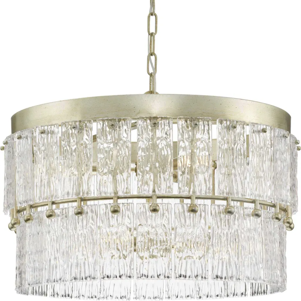 Progress Lighting Chevall 9-light Chandelier, Gilded Silver, Artisanal Glass, Modern Organic, Luxe, Transitional.