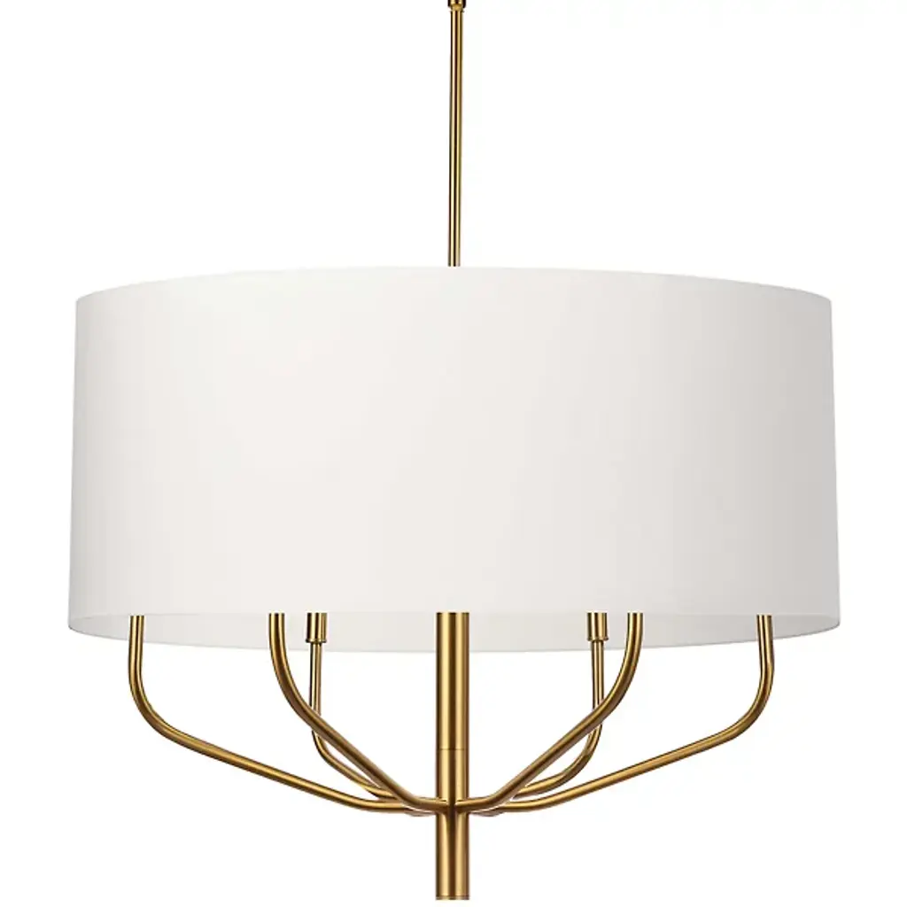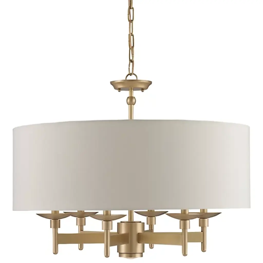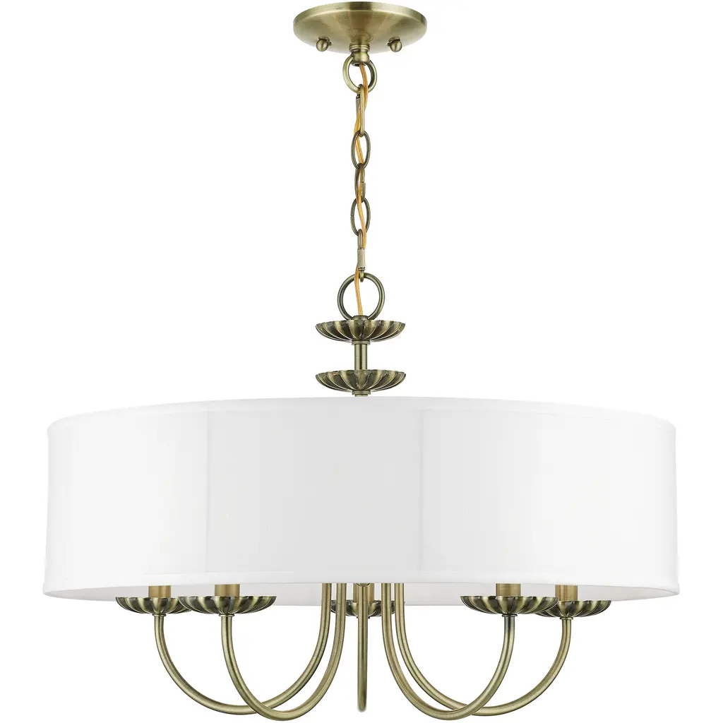Introducing the Progress Lighting Drum Shade Collection Chandelier, a stunning addition to your home decor. Crafted from durable steel with a brushed bronze finish, this chandelier exudes elegance and charm. The 21.63" width, 21.13" height, and 21.63" length make it a perfect centerpiece for your space. The 42" chain length allows for customizable installation. With a dry rating, it's suitable for most indoor settings. This chandelier features a drum shade with a crisp white textured fabric, creating a country-casual ambiance. The fixture accommodates 5 incandescent bulbs with a maximum wattage of 60 watts each, offering ample illumination. It's also compatible with dimmable bulbs, allowing you to set the perfect mood. Elevate your home with the timeless beauty of the Progress Lighting Drum Shade Collection Chandelier.