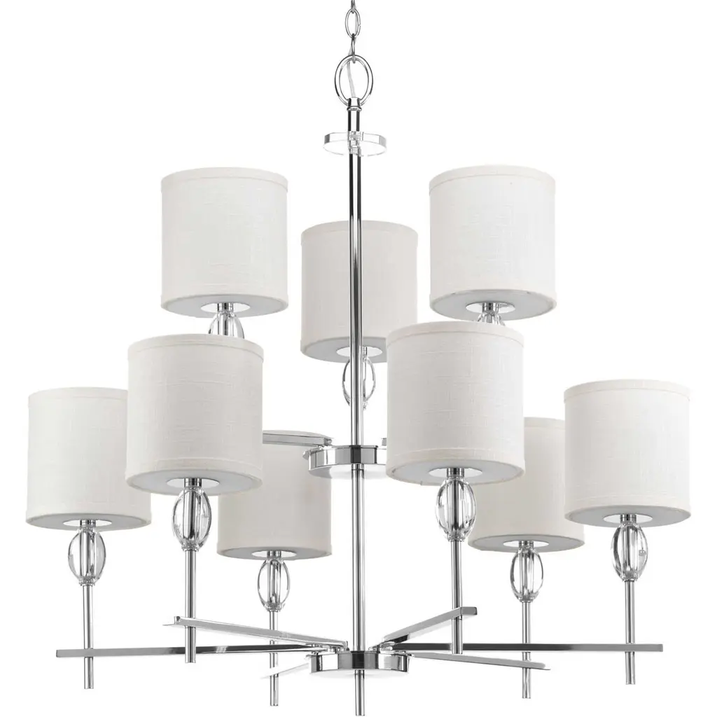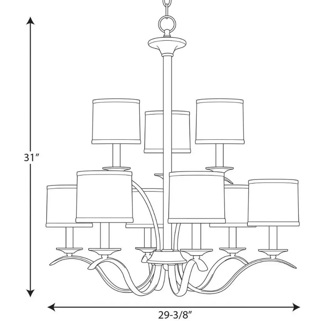 Progress Lighting Inspire 9-light Two-tier Chandelier, Brushed Nickel, Off-white Linen Shades