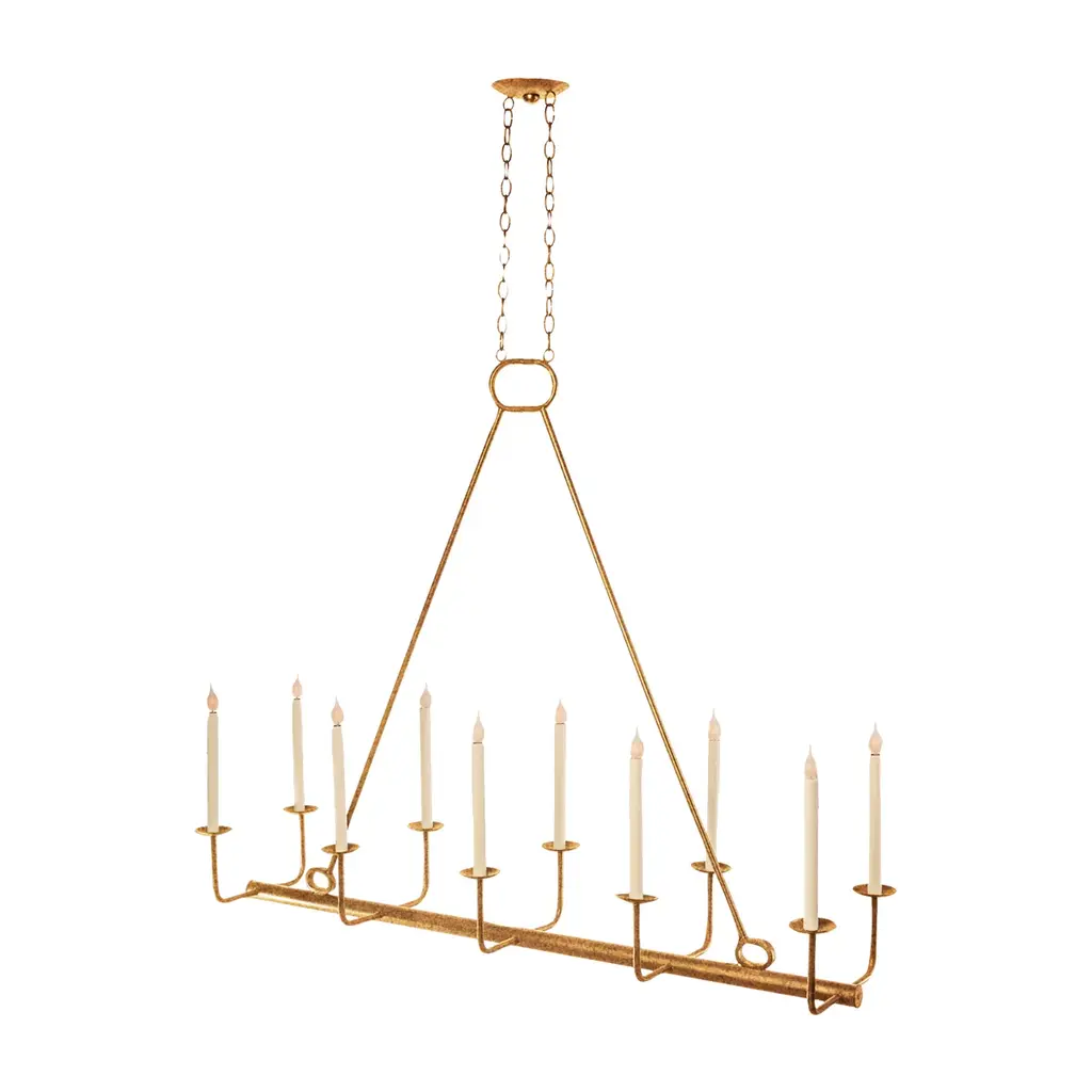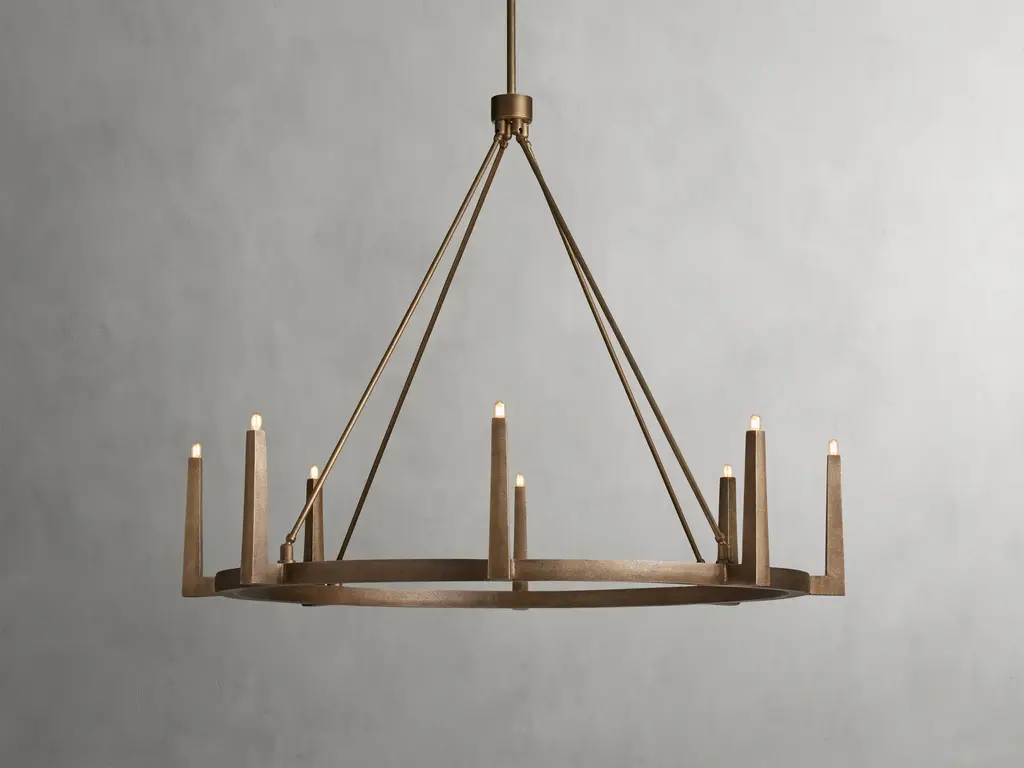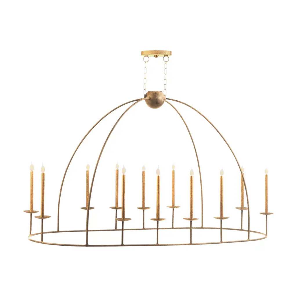 The Province chandelier has an airy silhouette that offers low-key elegance with a big impact. The clean lines and curved arches pair beautifully with the twelve tall candelabra-style beeswax candle covers. This transitional piece is a true statement and is available in three finishes that will produce a natural patina as they age. These nature-inspired finishes protect the fixture but also create a more beautiful luster with time. This chandelier is made-to-order. Please select your finish before adding to cart.