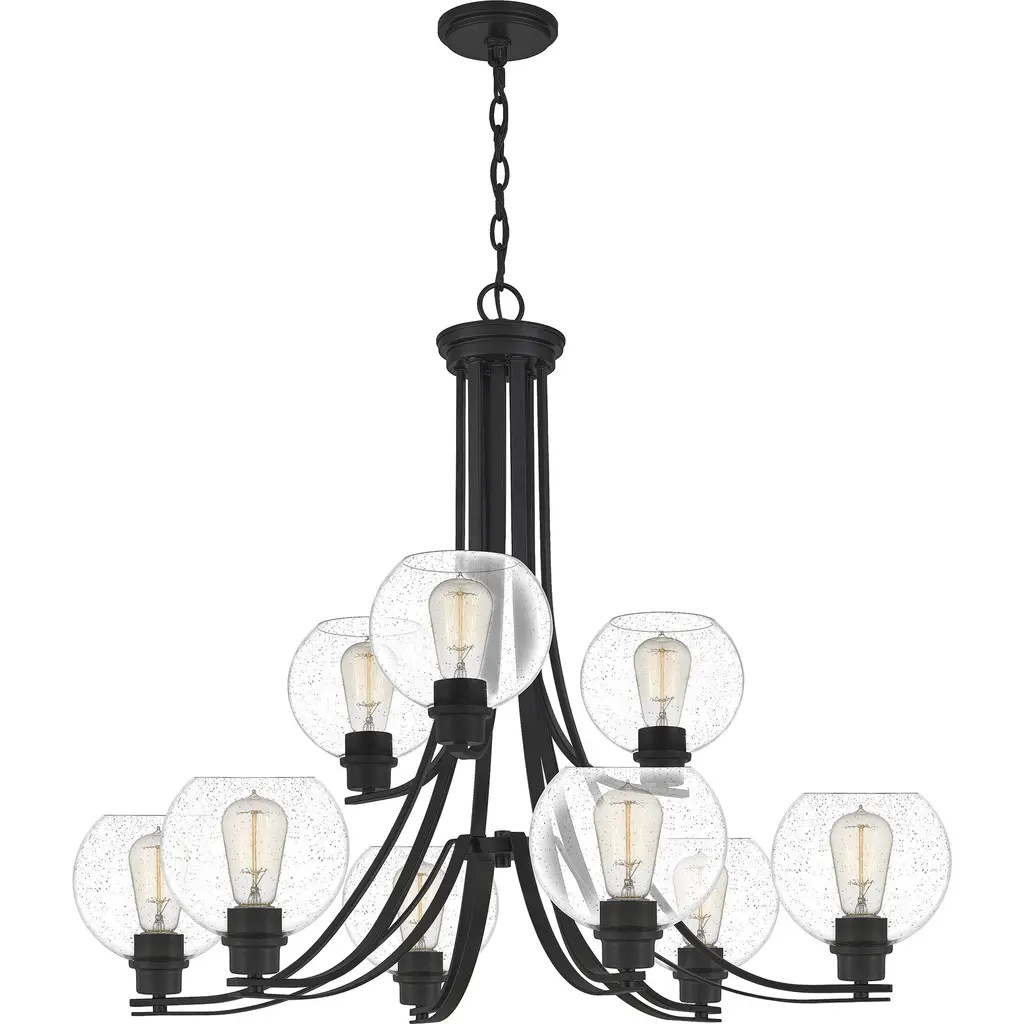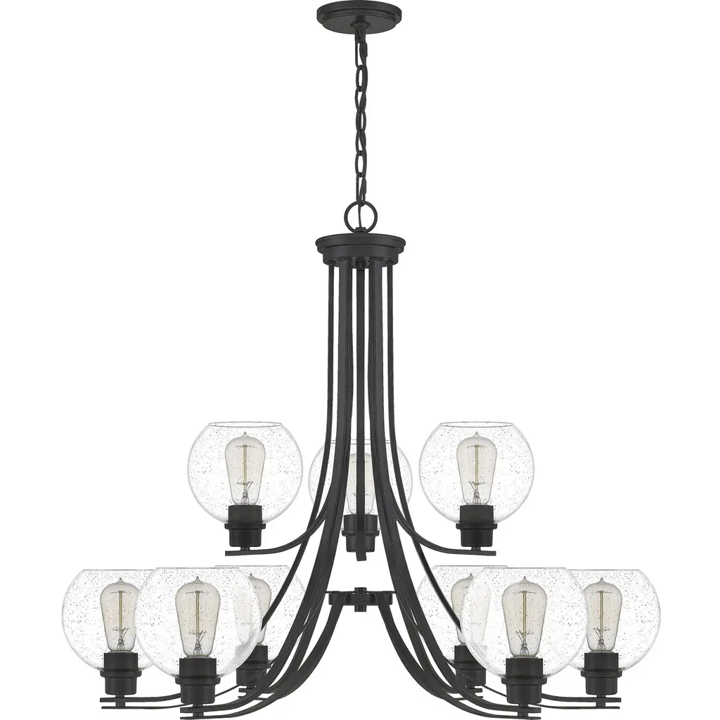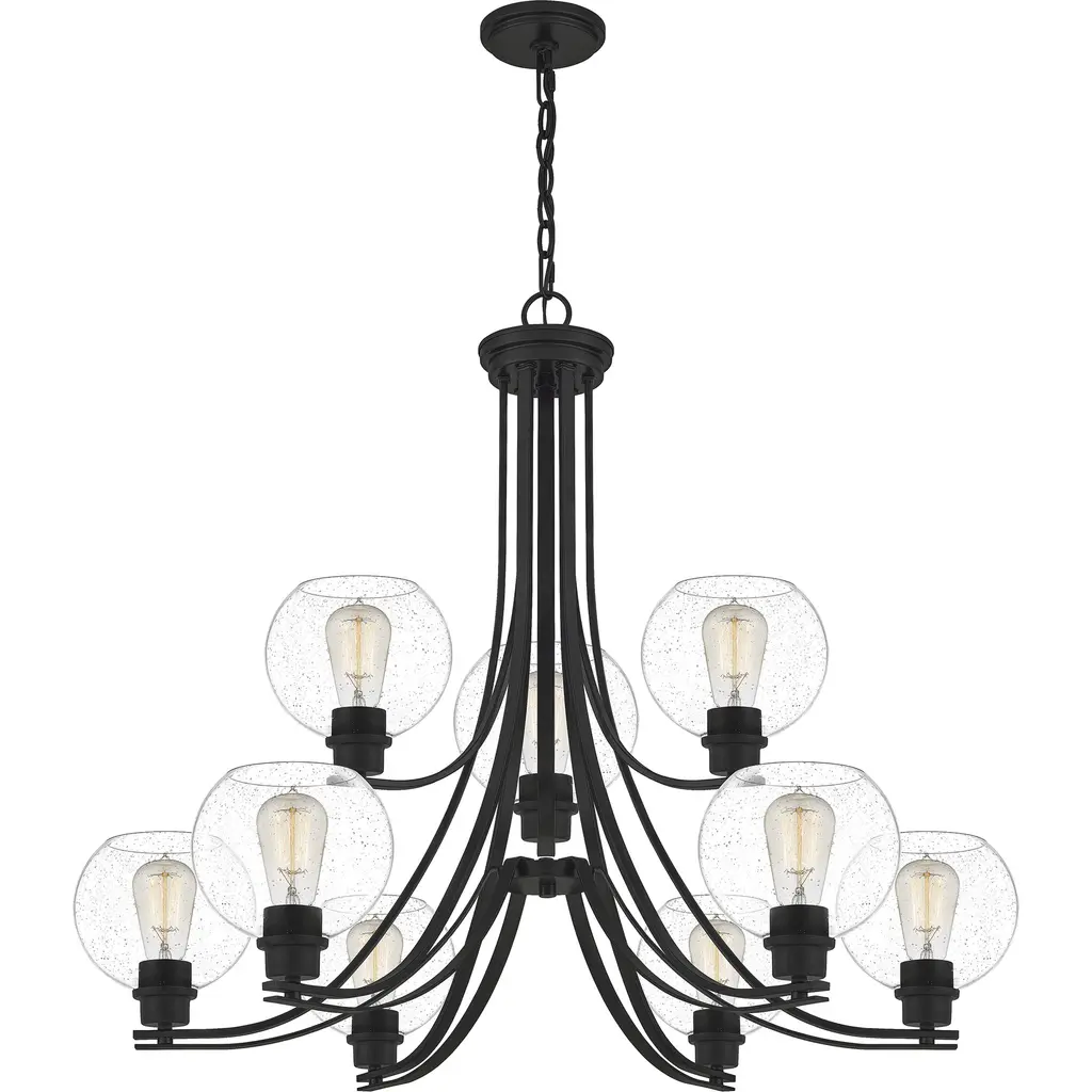 Pruitt 9 Light 34 Inch Matte Black Chandelier Ceiling Light In Clear Seedy Glass