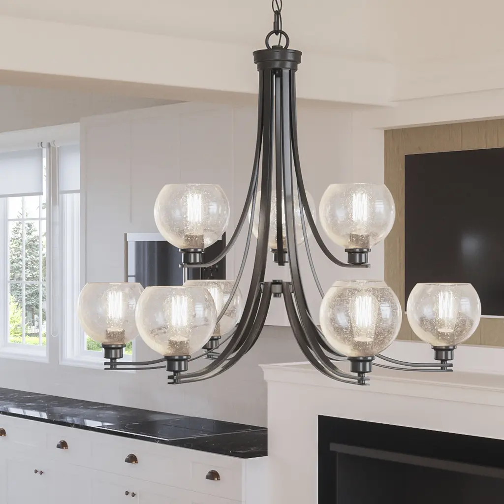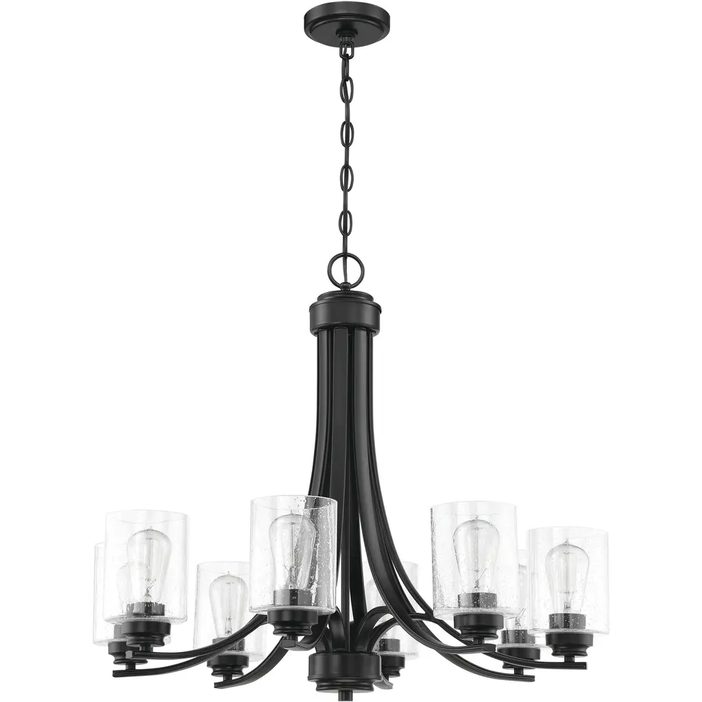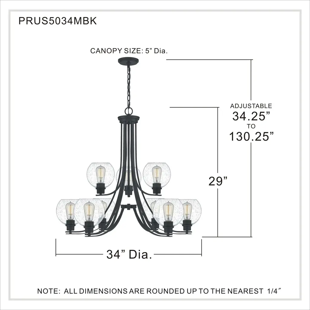 Pruitt 9 Light 34 Inch Matte Black Chandelier Ceiling Light In Clear Seedy Glass