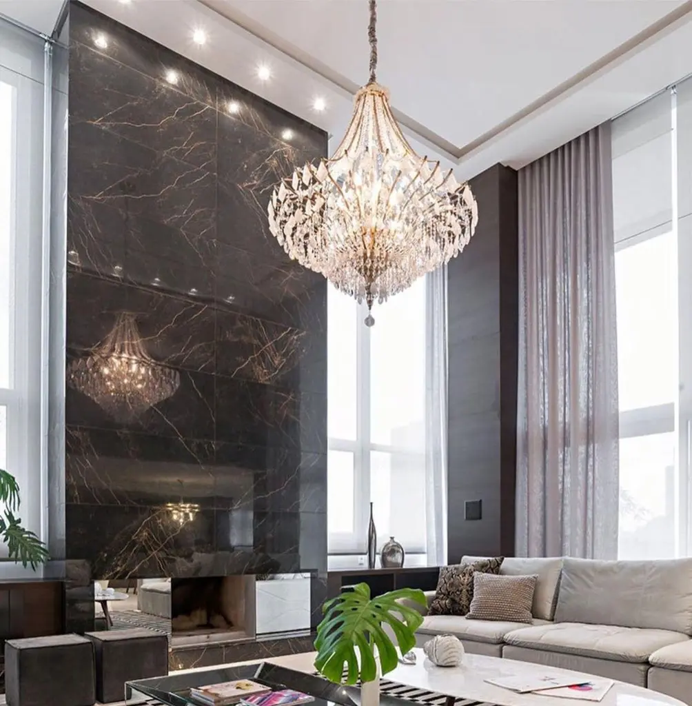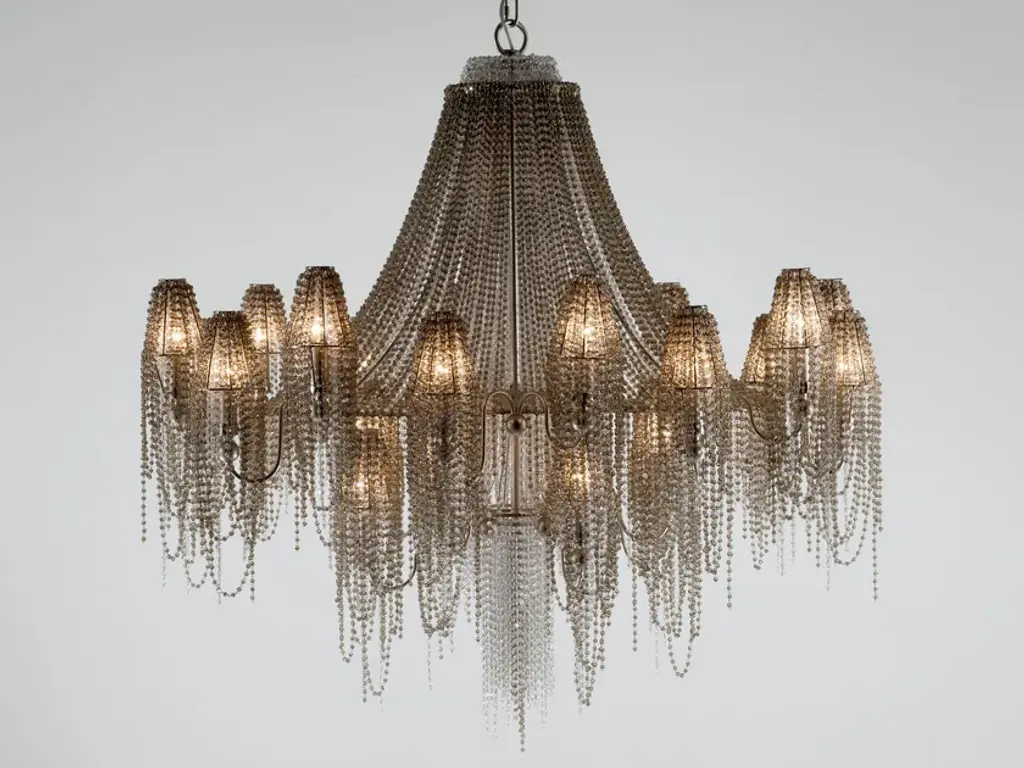 Quartz chandelier lamp by AverDimensions: D 110 x H 115 cm Materials: Quartz, crystal, metal.Lighting: 18 x E14Finishes: Gold Leaf, Silver Leaf, Warm Gold Leaf, Warm Silver Leaf, Warm Copper Leaf, Dark Gold Leaf, Dark Silver Leaf, Bronze Leaf, Antique Bronze, Antique Golden.All our lamps can be wired according to each country. If sold to the USA it will be wired for the USA for instance.The history of Aver Metais as a lighting brand begins with Jefferson Aver manufacturing lamps in a completely handcrafted way and with very few resources in the family business. Over the years, the brand has grown and gained recognition. Today, our products are present in several projects by prestigious professionals, in addition to being resold in lighting boutiques in different regions of Brazil. Through its partners, Aver Metais has several participations in important design and architecture exhibitions. In 2015 the company started its internationalization process and today has clients and projects carried out in places like New York, Los Angeles, Chicago, Dallas, Miami, London, Cardiff, Hamburg, Manila, Santa Cruz de la Sierra, and Lima, attesting to the level quality and competitiveness of Aver Metais products.In our factory, each piece is meticulously produced using modern production processes combined with craftsmanship to detail. The result is original pieces that, more than illuminate, are jewels for your home. Over the years, the brand has been dedicated to creating and producing original and high-quality decorative lighting fixtures that can fit into the most varied and demanding interior architecture projects.