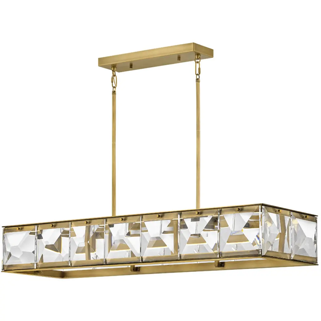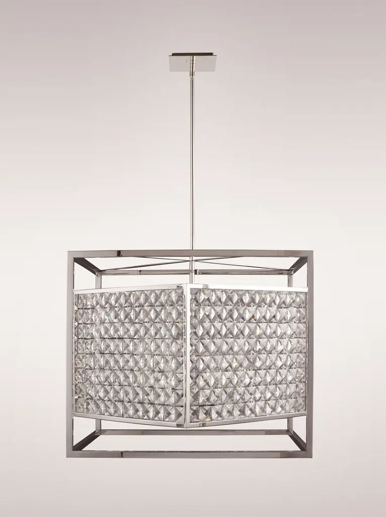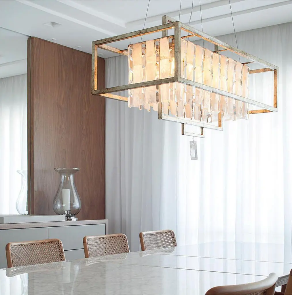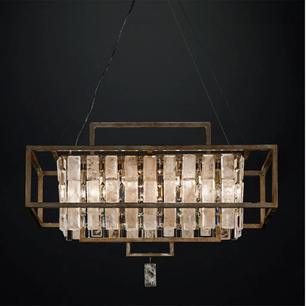 Quartz chandelier lamp by Aver Dimensions: D 50 x W 100 x H 65 cm Materials: Aluminum, plated with gold leaf. Natural Smokey Quartz. Lighting: 10 x E14Finish: Silver veneer, aged silver veneer, gold veneer, aged gold veneer, copper veneer, aged copper veneer, aged gold patina, antique patina.Also available in white quartz, smoky quartz, citrine quartz. All our lamps can be wired according to each country. If sold to the USA it will be wired for the USA for instance.Geometric pendant using rectangular plates of natural rock crystal and cut crystal. The Art Deco movement served as inspiration for the project.The history of Aver Metais as a lighting brand begins with Jefferson Aver manufacturing lamps in a completely handcrafted way and with very few resources in the family business. Over the years, the brand has grown and gained recognition. Today, our products are present in several projects by prestigious professionals, in addition to being resold in lighting boutiques in different regions of Brazil. Through its partners, Aver Metais has several participations in important design and architecture exhibitions. In 2015 the company started its internationalization process and today has clients and projects carried out in places like New York, Los Angeles, Chicago, Dallas, Miami, London, Cardiff, Hamburg, Manila, Santa Cruz de la Sierra, and Lima, attesting to the level quality and competitiveness of Aver Metais products.In our factory, each piece is meticulously produced using modern production processes combined with craftsmanship to detail. The result is original pieces that, more than illuminate, are jewels for your home. Over the years, the brand has been dedicated to creating and producing original and high-quality decorative lighting fixtures that can fit into the most varied and demanding interior architecture projects.