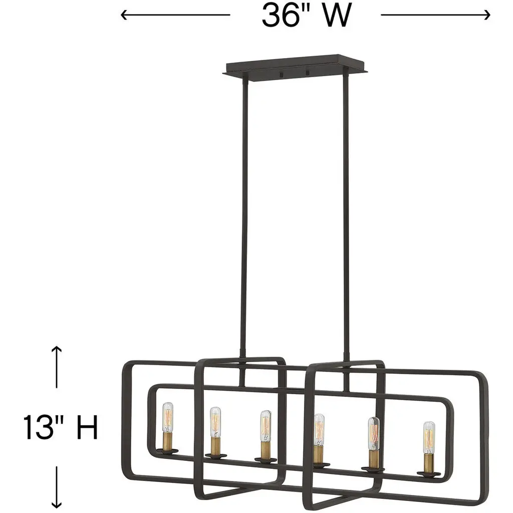 Quentin 6 Light 36 Inch Buckeye Bronze With Heritage Brass Indoor Linear Chandelier Ceiling Light