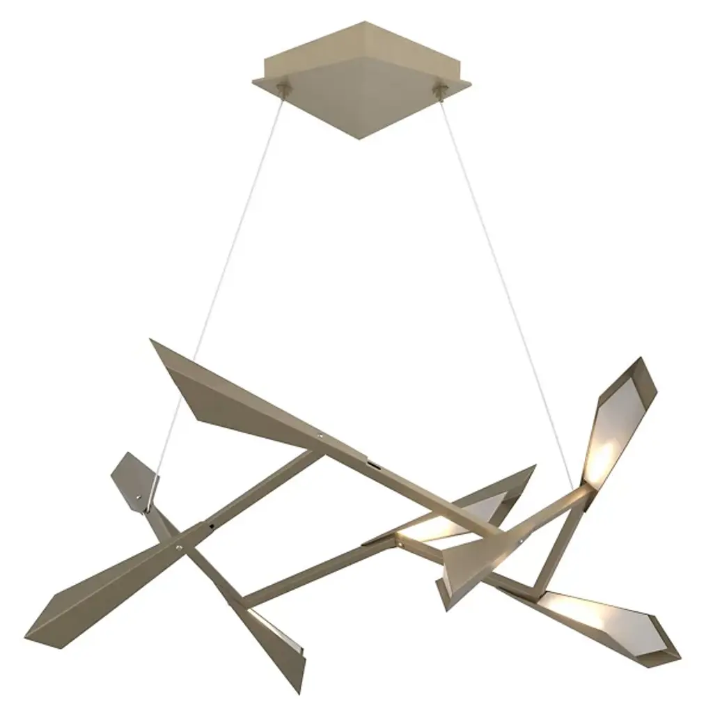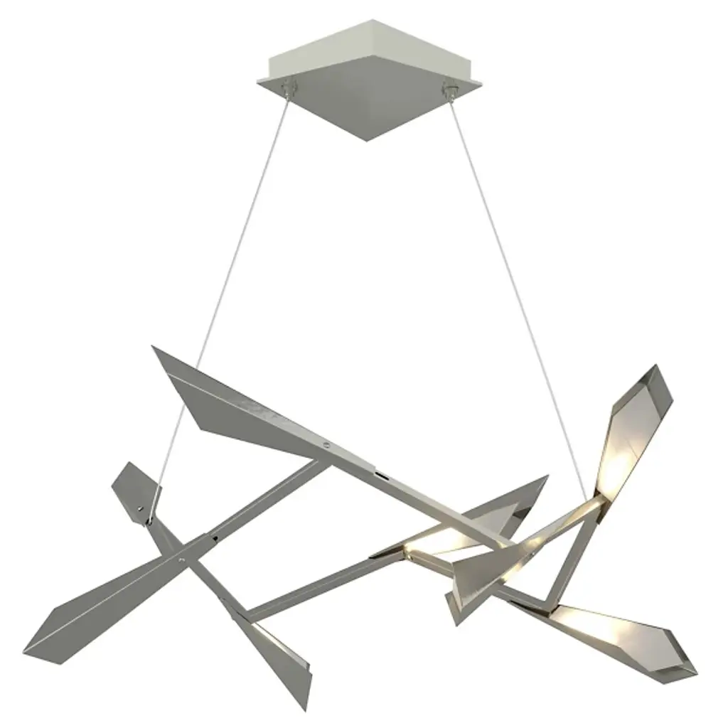 Sculptural lighting is the feather in the cap of any modern design scheme. The Hubbardton Forge Quill LED Chandelier is a uniquely deconstructed chandelier, modeled with antique quill pens in mind. Eight folded aluminum shades are arranged in a jaunty configuration that is at once off-kilter and in harmony. Tucked into each fold, LED arrays provide a warm glow when illuminated and do not detract from the artistic silhouette when the lights are off.