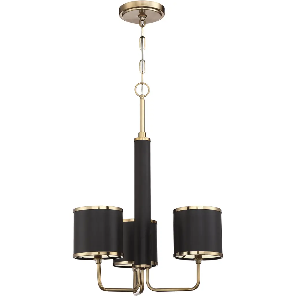 The Quinn is a transitional lighting series that is nothing short of regal. A satin brass finish complemented with black textured faux leather shades and accents make this stately design shine with superior quality. The warm and inviting halo created by the Quinn series makes a posh statement in upscale, interior spaces.
