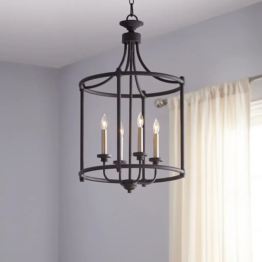Finish Color: Noir, Width: 18", Height: 30", Lamping Type: Incandescent, Number Of Bulbs: 4, Wattage: 60 Watts, Moisture Rating: Damp Rated, Desc: Four Light Large Cage Entry Pendant Features: Product Type: Entry / Style: Transitional / Finish: Noir . ,