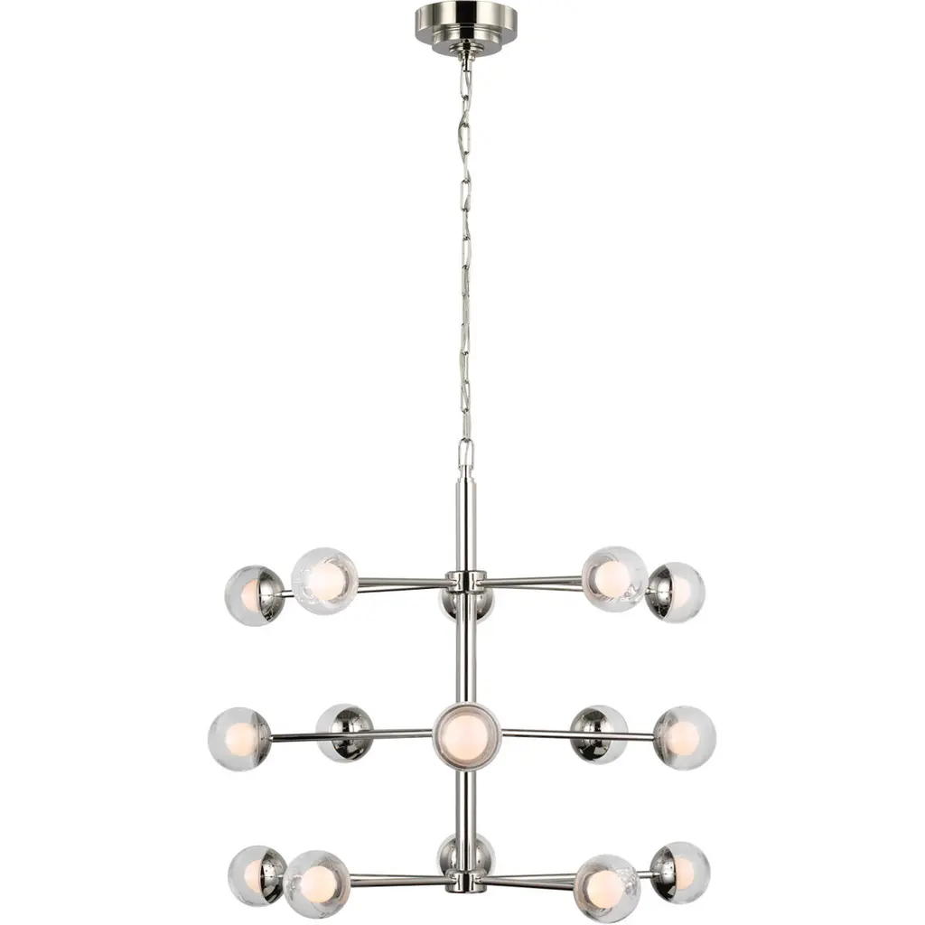 Collection: Belmont, Finish Color: Polished Nickel, Width: 30", Height: 7.5", Hanging Method: Rod and Chain, Lamping Type: Incandescent, Number Of Bulbs: 6, Wattage: 360 Watts, Moisture Rating: Damp Rated,