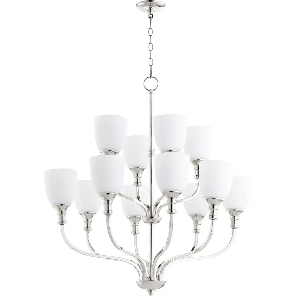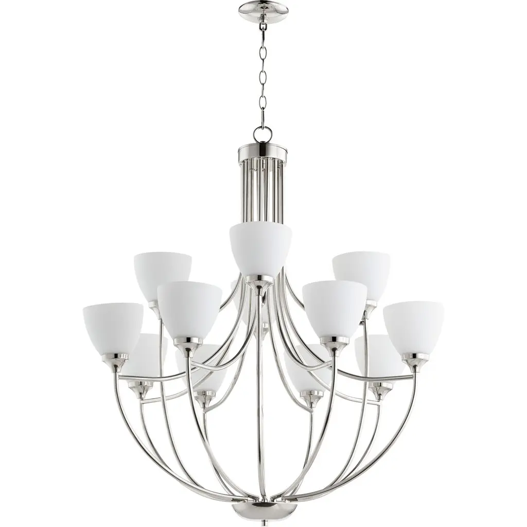 Quorum Lighting Celeste 9-light Chandelier, Polished Nickel, 32 Width, 33.5 Height, Glass Material, Dry Rated