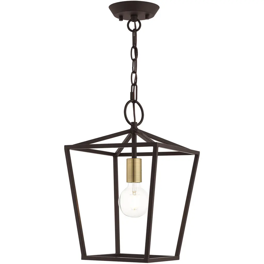 Collection: Cuboid, Finish Color: Oiled Bronze, Width: 8", Height: 14", Number Of Bulbs: 4, Wattage: 60 Watts, Dimmable: No, Moisture Rating: Dry Rated, Desc: Cuboid - Four Light Large Entry Pendant Features: Product Type: Entry / Style: Quorum Home Collection / Finish: Aged Silver Leaf . ,