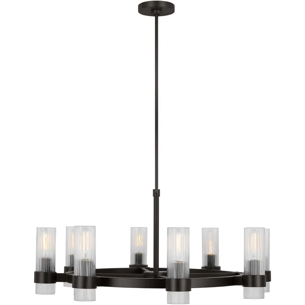 Collection: Harbin, Finish Color: Textured Black, Width: 32", Height: 34", Hanging Method: Chain, Lamping Type: Incandescent, Number Of Bulbs: 10, Wattage: 600 Watts, Moisture Rating: Damp Rated,