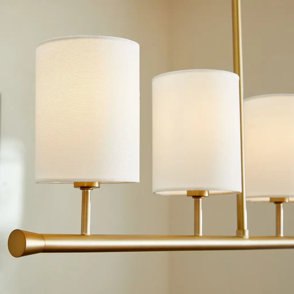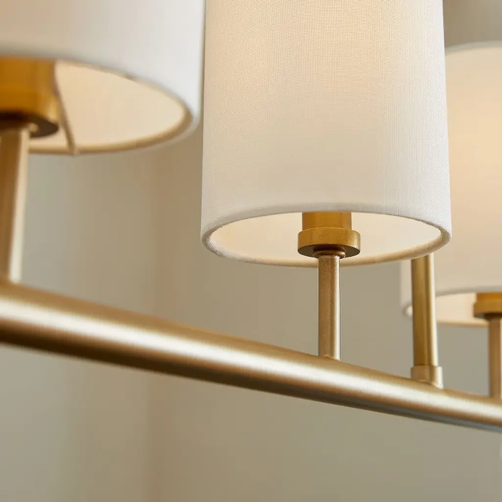 Collection: Harmony, Material: Fabric, Finish Color: Aged Brass, Width: 4.25", Height: 8.75", Length: 39", Hanging Method: Rod and Chain, Lamping Type: Incandescent, Number Of Bulbs: 5, Wattage: 300 Watts, Moisture Rating: Damp Rated Desc: Shade Included: Yes. , Material: Fabric, Finish Color: Aged Brass, Width: 4.25", Height: 8.75", Length: 39", Hanging Method: Rod and Chain, Lamping Type: Incandescent, Number Of Bulbs: 5, Wattage: 300 Watts, Moisture Rating: Damp Rated