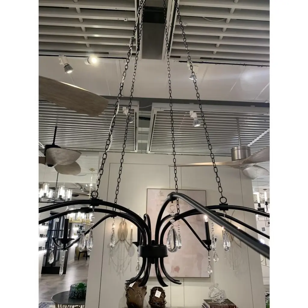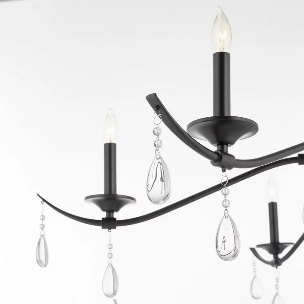 Collection: Lorelei, Finish Color: Matte Black, Width: 50", Height: 22", Hanging Method: Chain, Lamping Type: Incandescent, Number Of Bulbs: 6, Wattage: 360 Watts, Moisture Rating: Damp Rated, Desc: Refined and simplistic, the Lorelei family of dressed chandeliers offers a feeling of restrained opulence. Options of matte black or aged silver leaf finishes grace elongated, sweeping curves, firmly rooting the series in transitional appeal. Elevate your space with radiance created by hanging crystals and sturdy and dainty chains. Requires 6 - 60 Watt / Candelabra Base Bulbs / Damp Listed / Height adjustable with 8 Ft. included chain, 4 each. ,