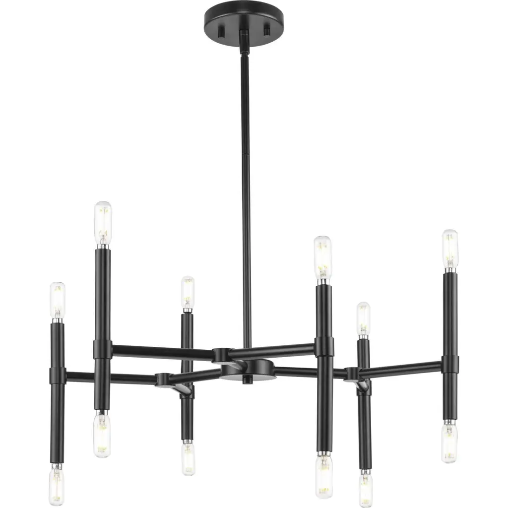 Collection: Sheridan, Finish Color: Matte Black, Width: 12", Height: 20.25", Length: 44", Hanging Method: Stem, Lamping Type: Incandescent, Number Of Bulbs: 8, Wattage: 360 Watts, Moisture Rating: Damp Rated, Desc: Rounded angles share space with bold lines in the Sheridan series. Soothing, neutral hues, and an effortless design firmly ground the family in Soft Contemporary design. With each configuration available in both aged brass and matte black, the Sheridan family offers a diverse selection adaptable to many styles and spaces. Requires 8 - 60 Watt / T10 Medium Base Bulbs / Height adjustable with 2-8", 2-12", 3-16" stems included / Damp Listed. ,
