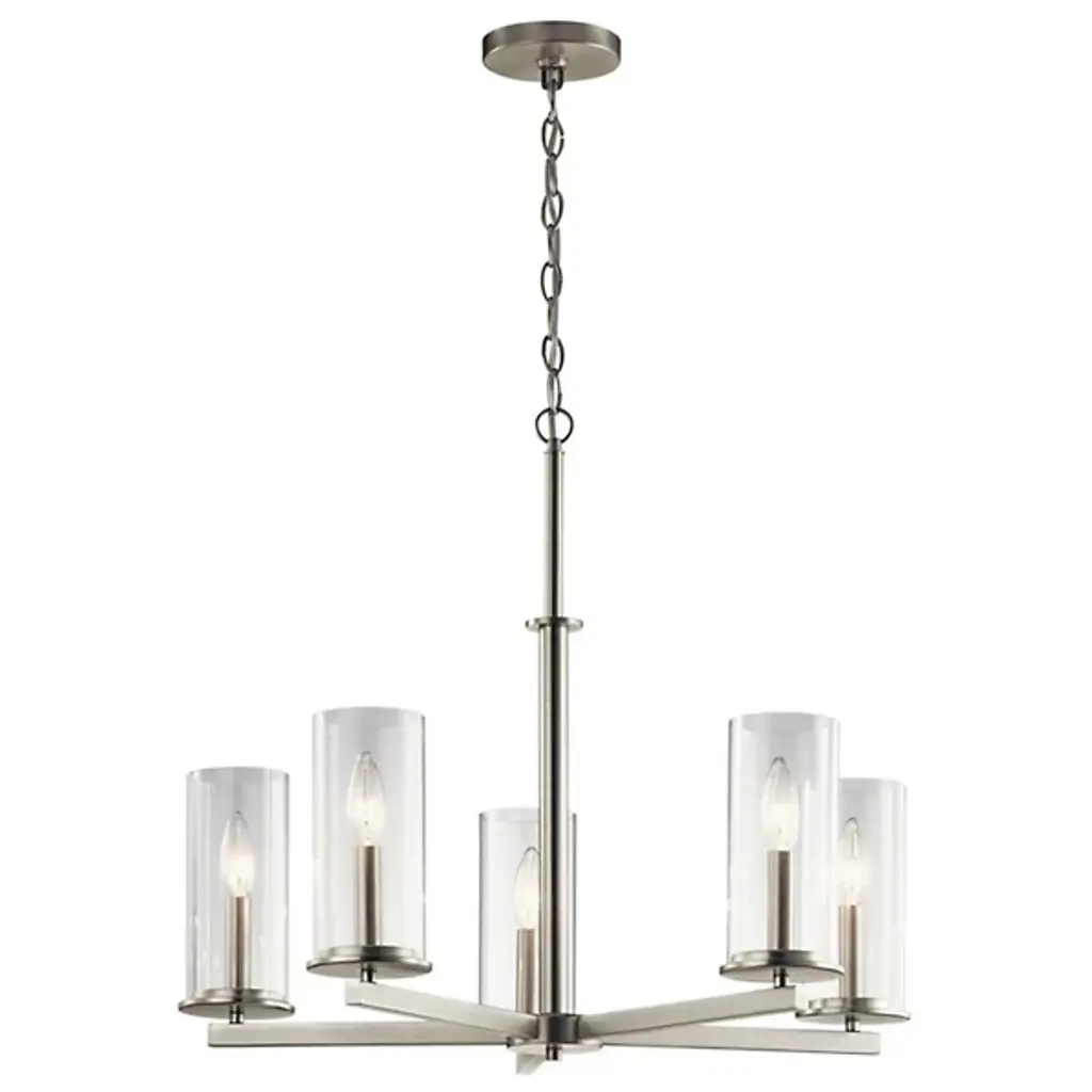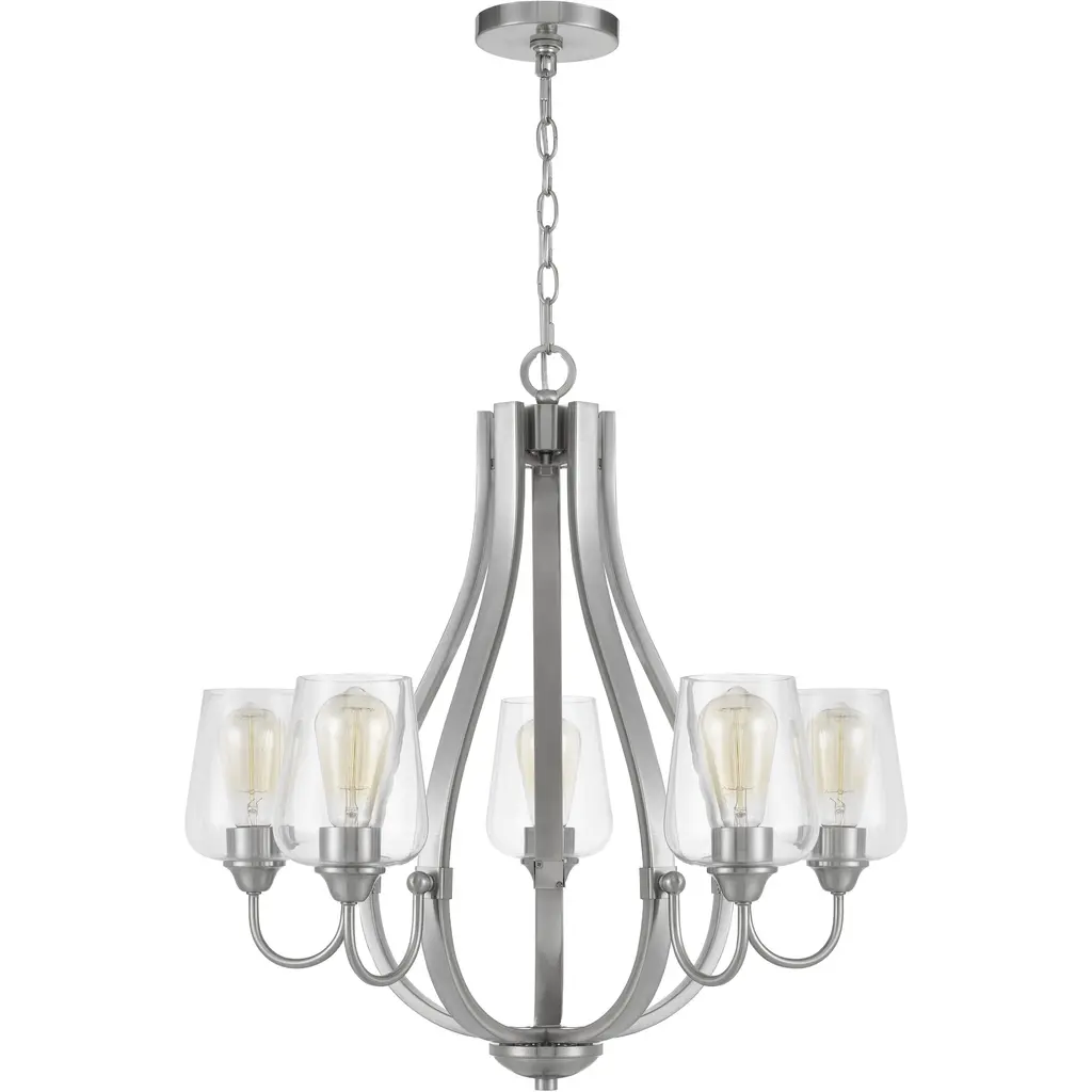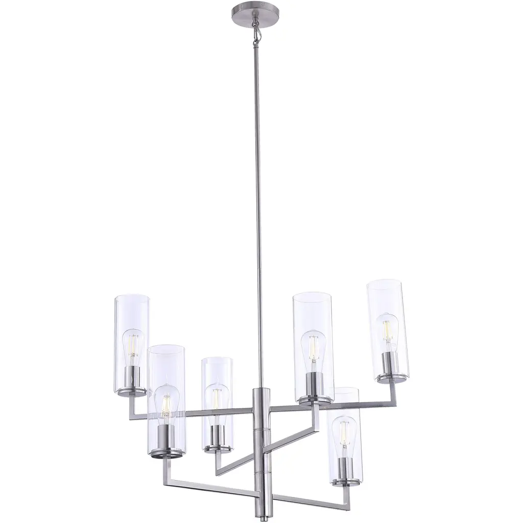Collection: Steinway, Finish Color: Satin Nickel, Width: 25", Height: 29", Hanging Method: Chain, Lamping Type: Incandescent, Number Of Bulbs: 6, Wattage: 360 Watts, Moisture Rating: Damp Rated,
