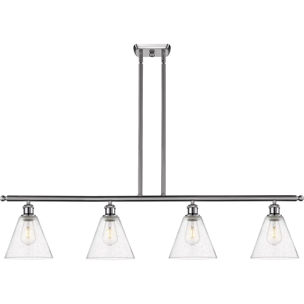 Collection: Tribute, Finish Color: Satin Nickel, Width: 5", Height: 9.5", Length: 35", Hanging Method: Rod and Chain, Lamping Type: Incandescent, Number Of Bulbs: 4, Wattage: 400 Watts, Moisture Rating: Damp Rated,