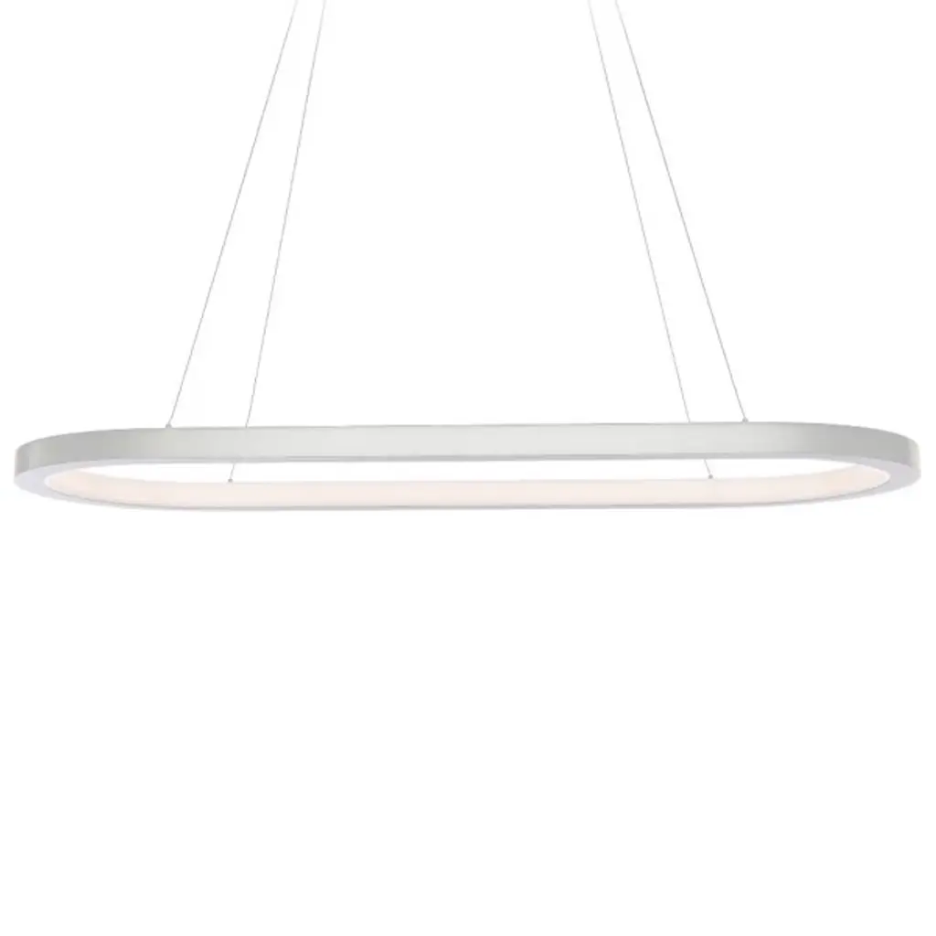 The ancient roman stadium boiled down to its sophisticated foundation. As the chariot races captivated audiences millennia ago, so does the striking glow of the Racetrack LED Chandelier from Modern Forms. Ultra-sleek aircraft cables suspend the piece with subtle contours that make it feel as if floating in the air. Moving swiftly in an oval form, its metal racetrack construction defines a room as a streamlined silhouette. Enjoy the spectacle of LEDs rushing through the continuous silicone gel diffuser with warmth and energy.