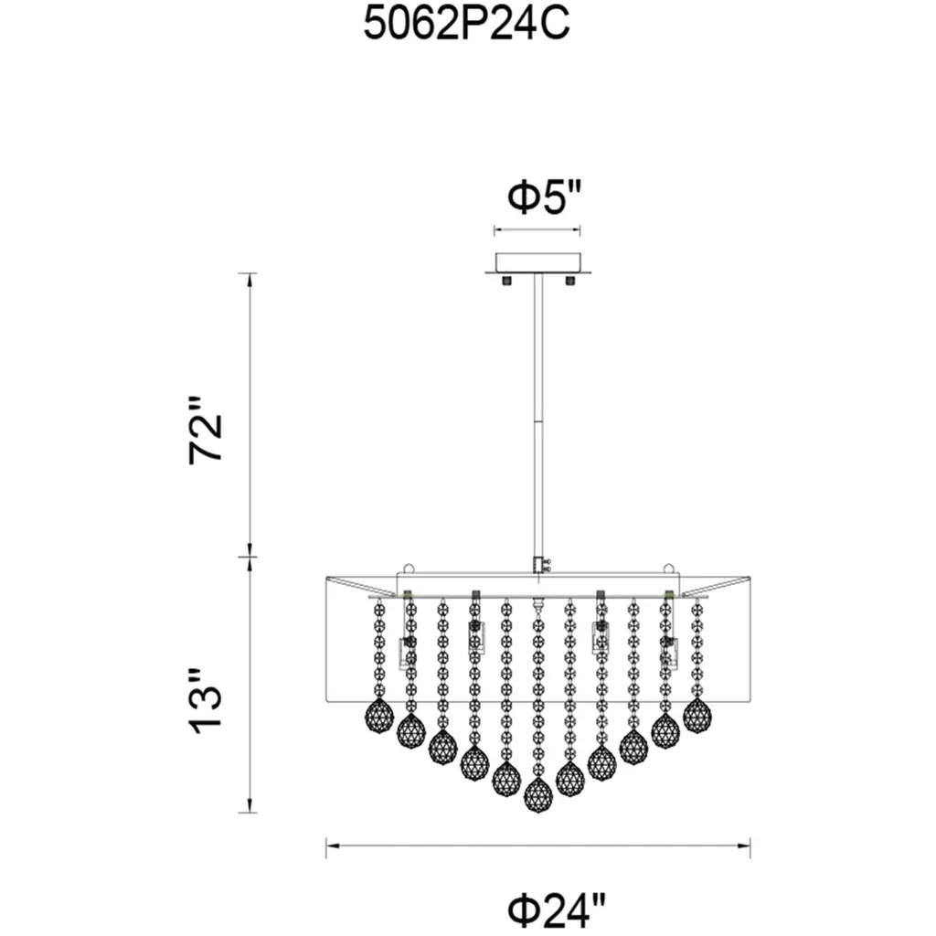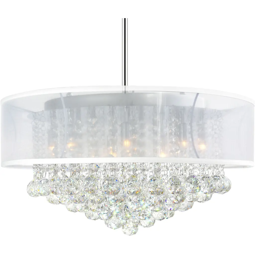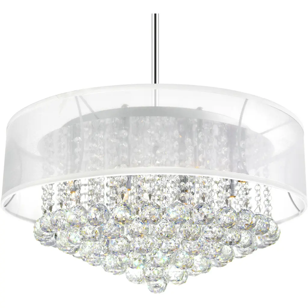 Bring elegance and brilliance to your space with the Radiant 12-Light 24-Inch Chandelier. This stunning fixture features strands of clear crystals encased in a sheer white shade, offering a beautiful blend of sparkle and soft, diffused light. Designed to elevate both modern and contemporary interiors, it creates a bright yet intimate ambiance. Ideal for dining rooms or kitchens, this chandelier adds graceful charm and functional beauty to your home.