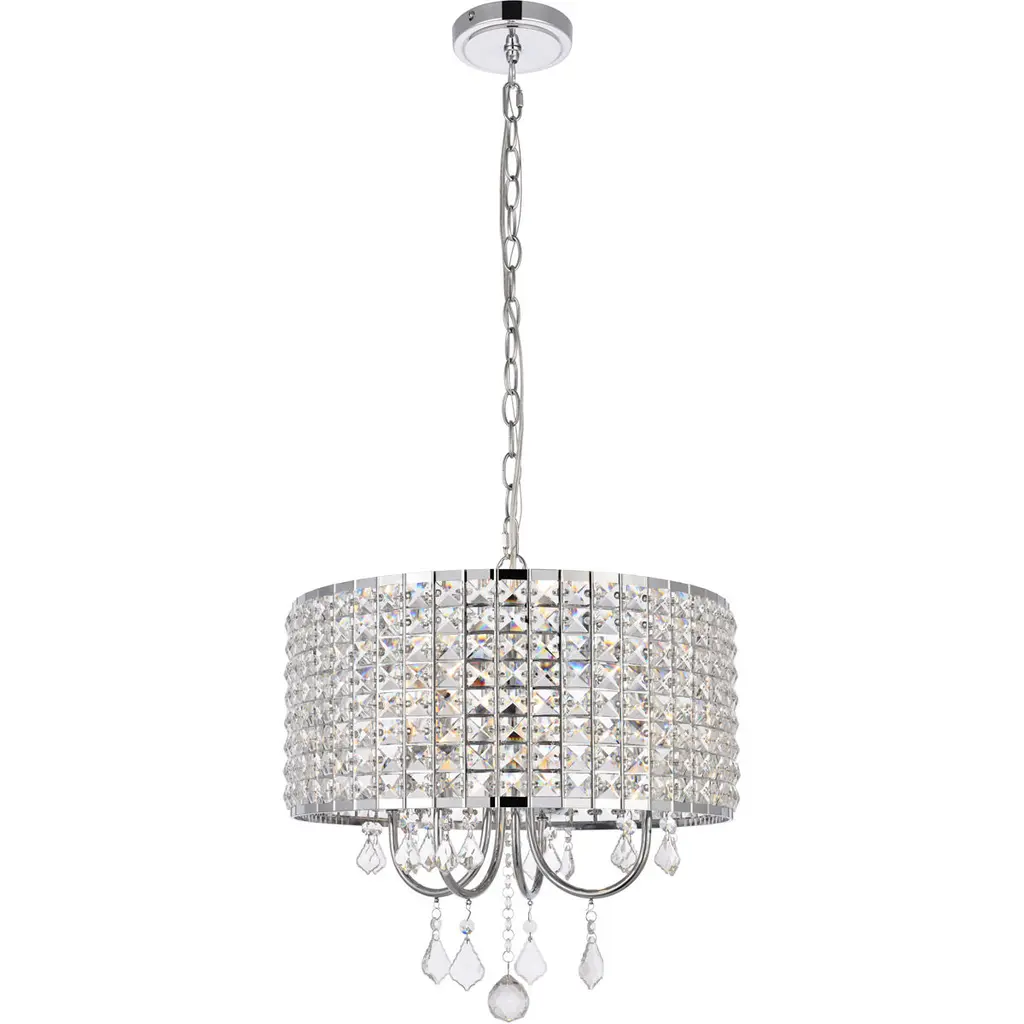 Radiant 12 Light 24 Inch Chrome Drum Shade Chandelier Ceiling Light In White