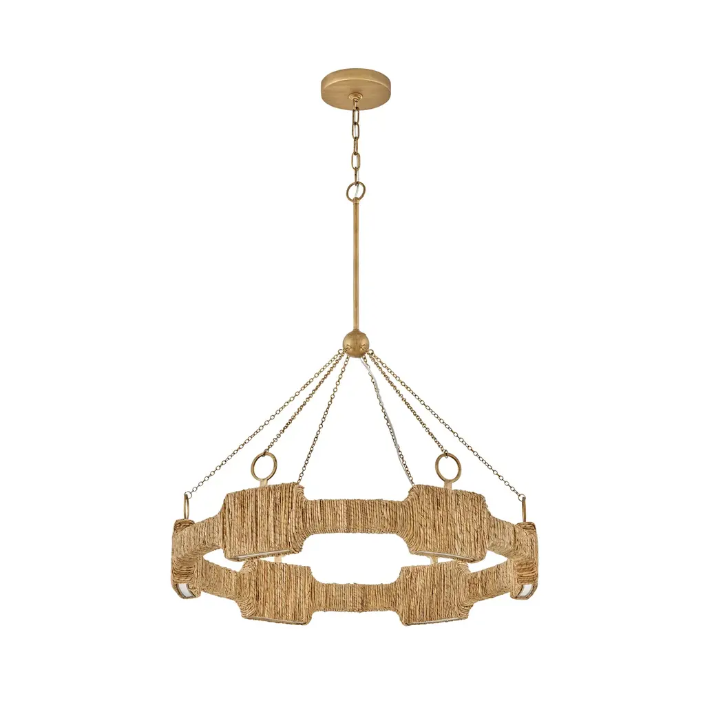 The Lisa McDennon Collection offers a striking mix of edgy, sculptural silhouettes that incorporate modern, organic elements and luxe materials, brought to life by her innovative and original point of view. Raffi's coastal, bohemian vibe is balanced by the distinctively modern shape. Its unique LED design offers an abundance of functional light, highlighted by the slim form that’s hand-wrapped with traditional basket material. The unexpected design and Burnished Gold finish make it the perfect complement to any space. Features