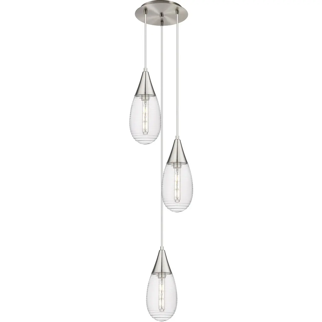 Raindrop Multi-Port 3 PC.-Metallic Beige Silver-Blown Glass - Clear-Silver Cloth Braided Cord-LED