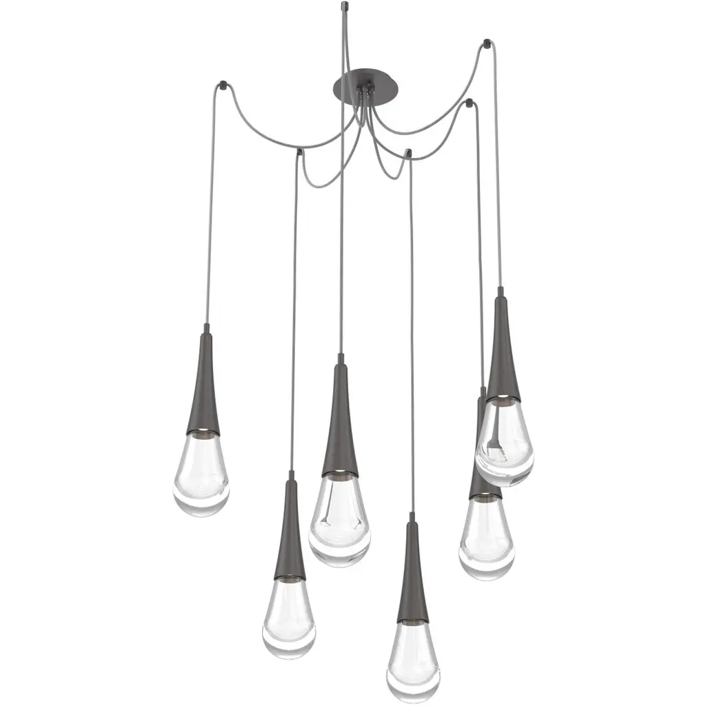 Rain Drop Led 17.4 Inch Graphite Chandelier Ceiling Light In 2700k Led, Multi-Port