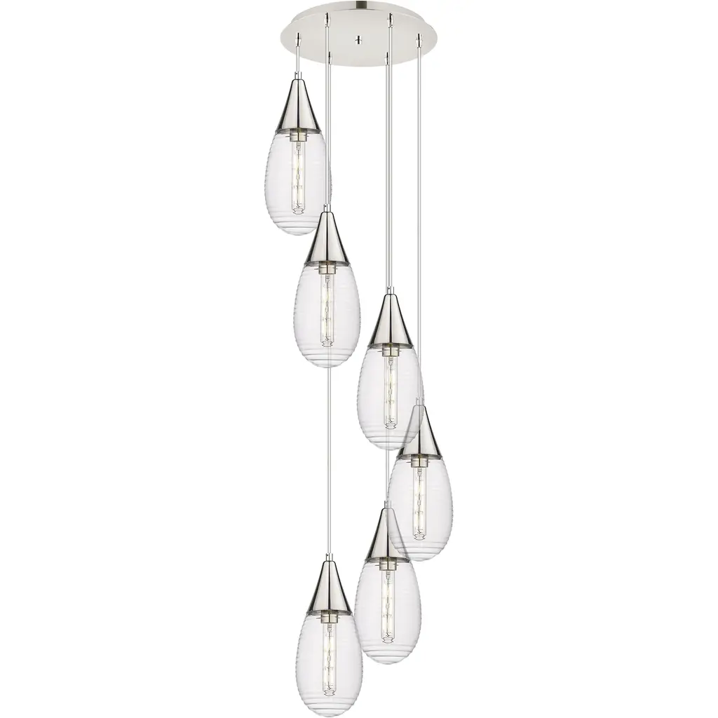 Raindrop Multi-Port 5 PC.-Classic Silver-Blown Glass - Clear-Silver Cloth Braided Cord-LED