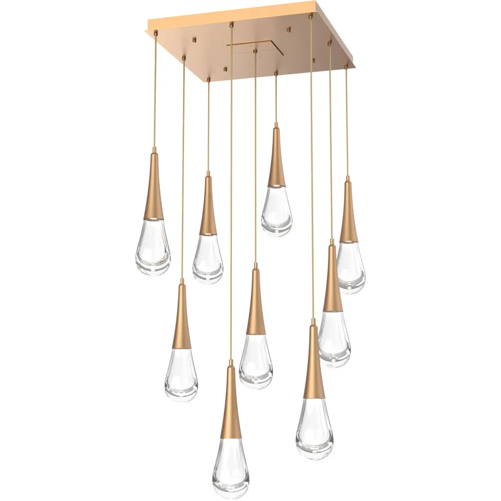 Raindrop Multi-Port 9 PC.-Burnished Bronze-Blown Glass - Clear-Bronze Cloth Braided Cord-LED