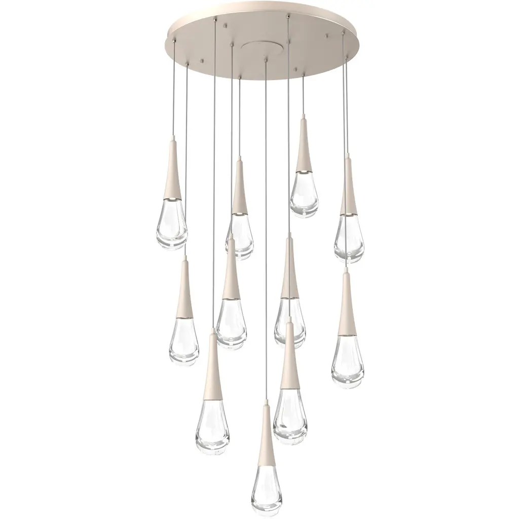 Raindrop Multi-Port 11 PC.-Novel Brass-Blown Glass - Clear-Brass Cloth Braided Cord-LED