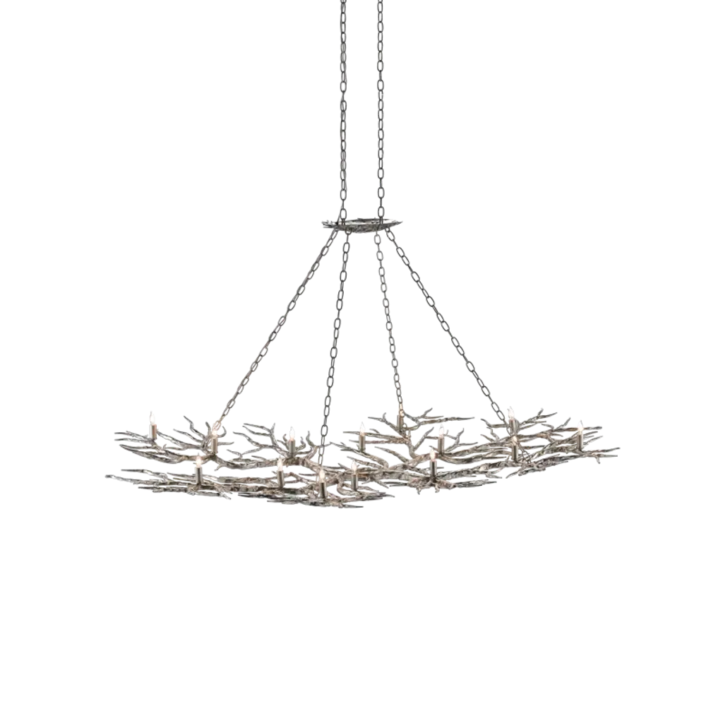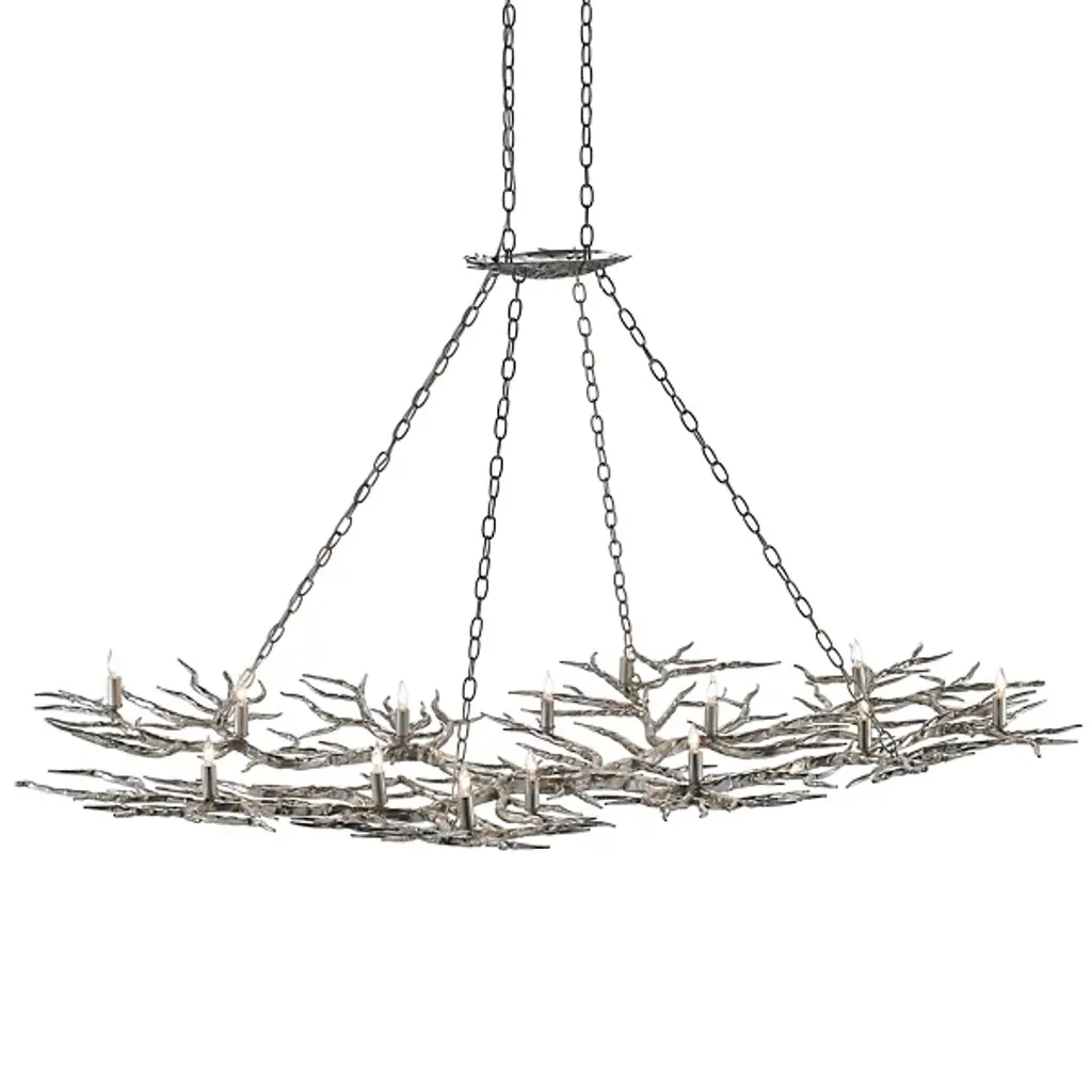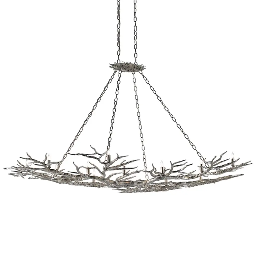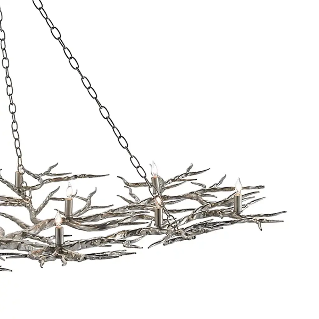 Room to grow. Inspired by natural forms, the Rainforest Chandelier by Currey & Company adds a branching sylvan canopy to your interior décor story. Subtle candelabra bulbs distributed throughout this versatile chandelier cast light over the entire room below, while its handsome design combines rustic and elegant aesthetics in perfect harmony.