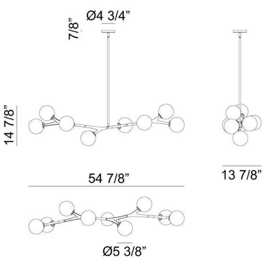8 LT L54.9" W13.8" "RAMI" BLACK CHANDELIER E12 840W