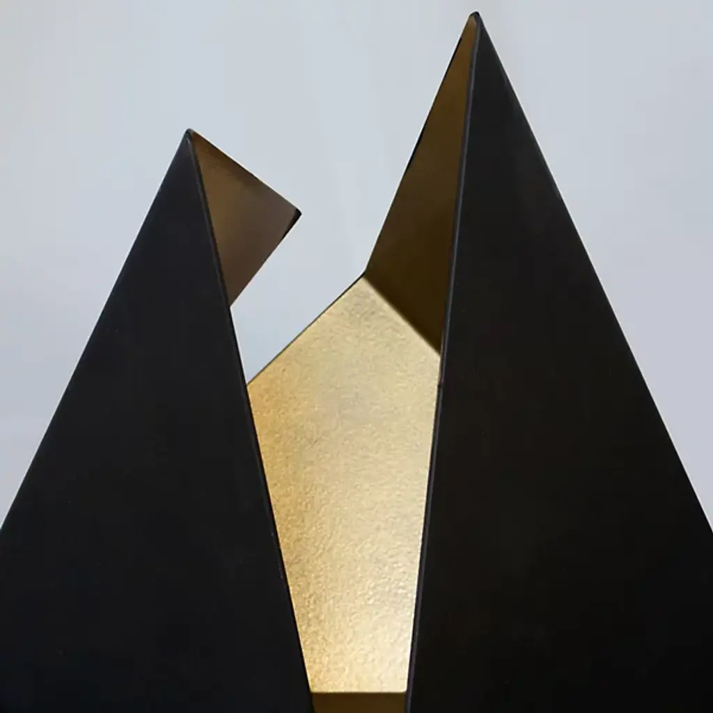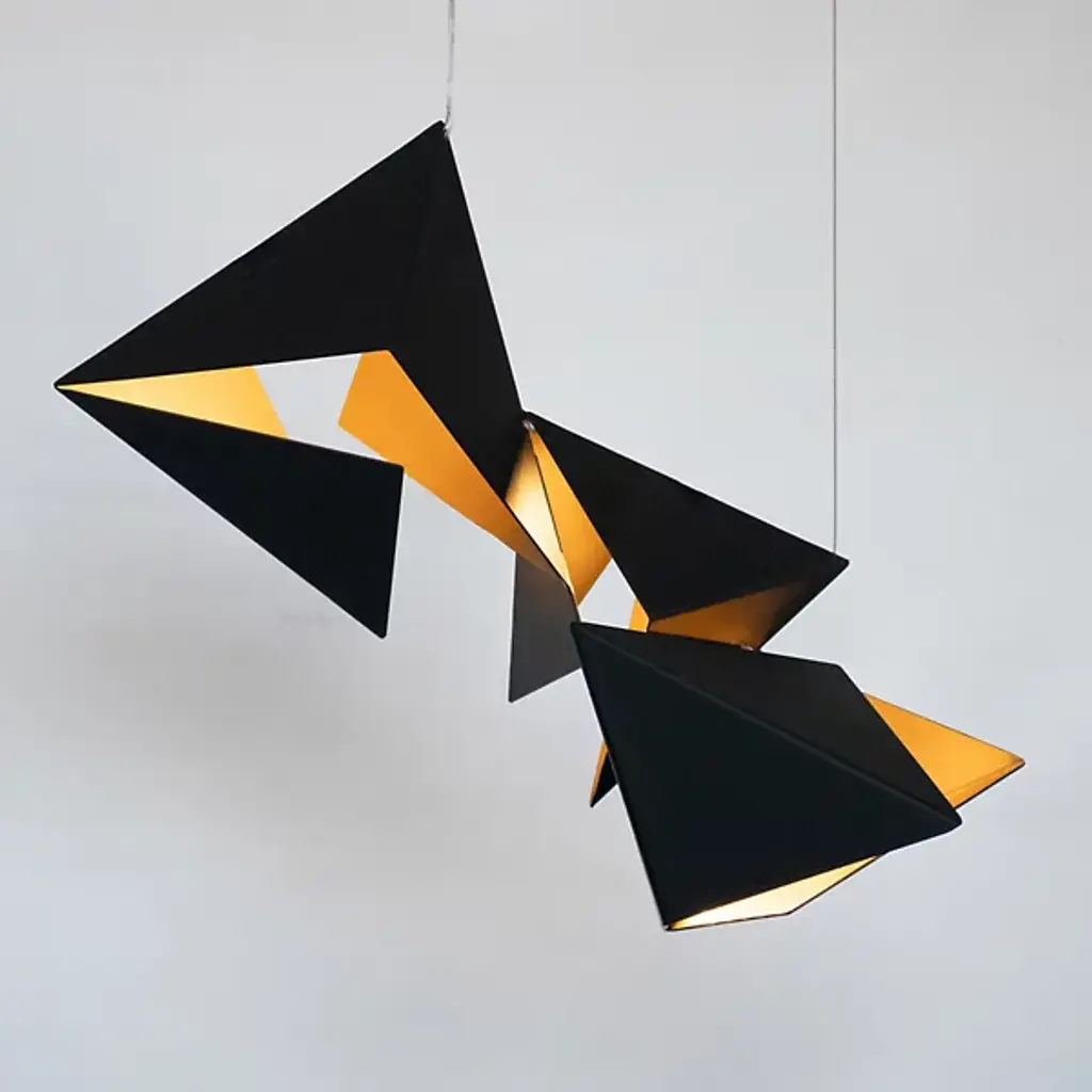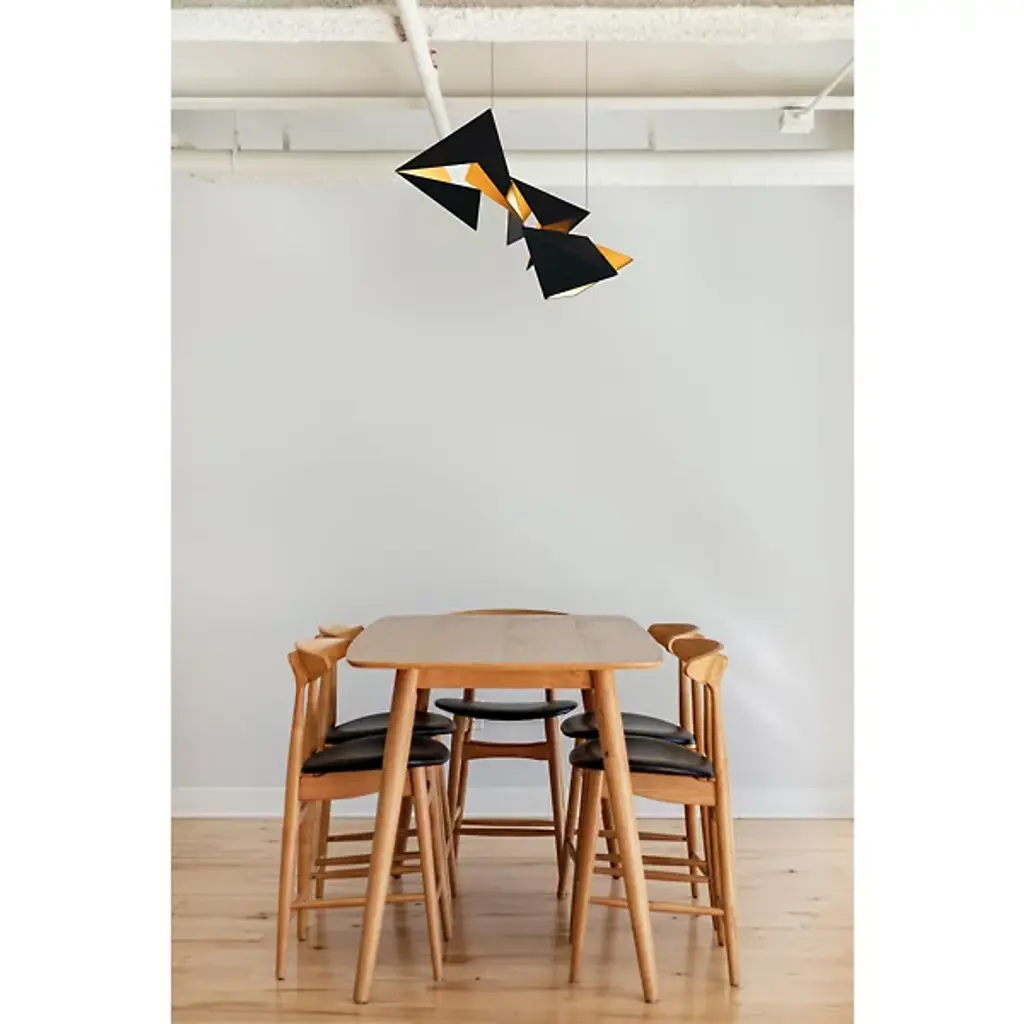 The Rapture Cluster Chandelier from Ridgely Studio is an abstract drawing realized in an open space. Like its name suggests, the piece fills one with a sense of joy through geometry that appears to transform before one’s the eyes. This seamless blend of sculpture and functional lighting speaks to creator Zac Ridgely’s approach of bringing an artistic edge to his work. The pendant achieves its wondrous floating effect with a suspension of ultra-fine wires. Handcrafted in steel, two-tone geometry appears to break open to create the pendant’s dynamic and dimensional shades. Lamps nestled inside help create an impression-making display of light and shadow. The lamps’ reflected light gives the room a pleasant warm atmosphere.