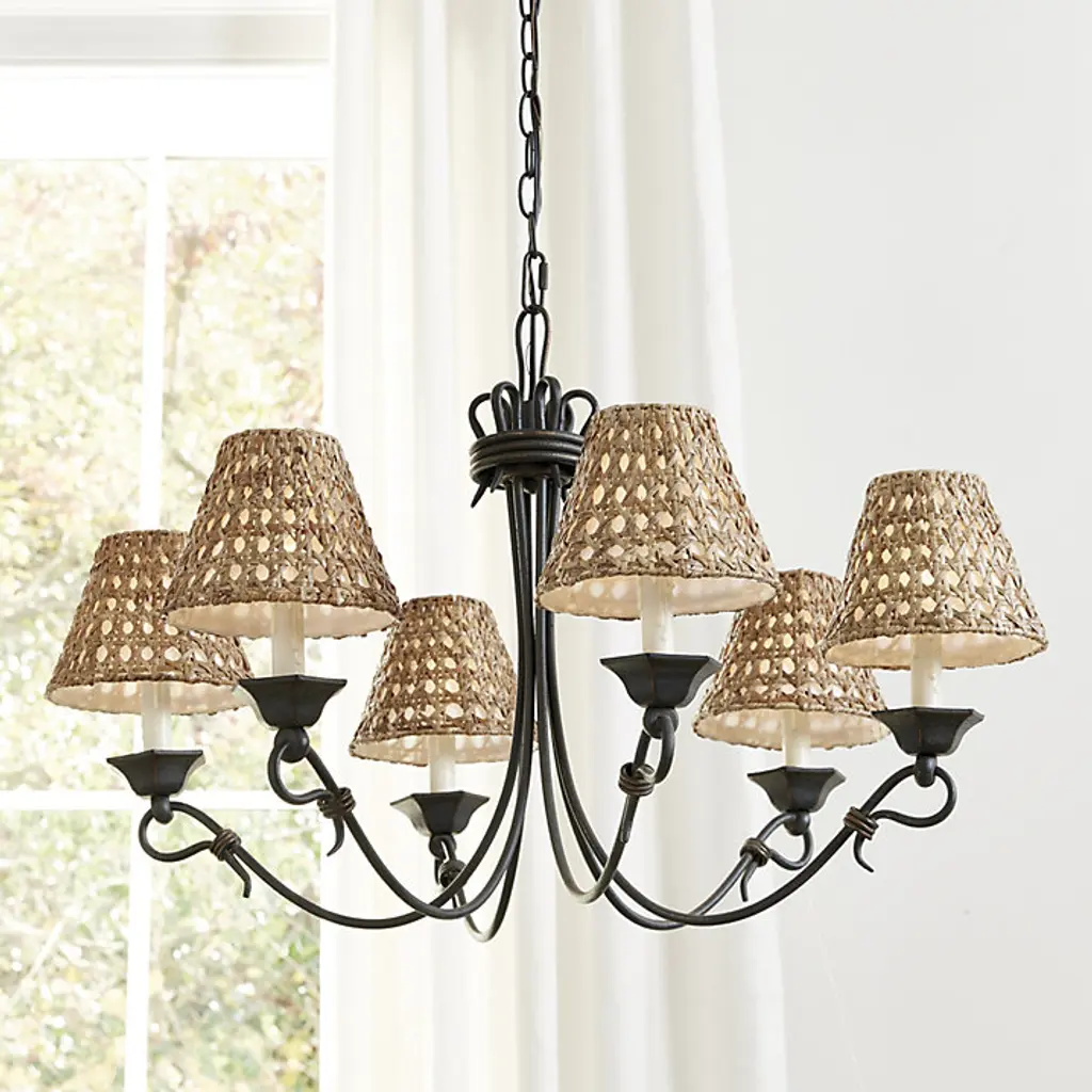 Global texture in warm natural rattan. Our Rattan Chandelier Shade is beautifully hand woven in your choice of two classic patterns: an airy eyelet weave or a traditional basket weave. Both styles are lined in ivory cotton fabric to soften the light. Rattan Chandelier Shade