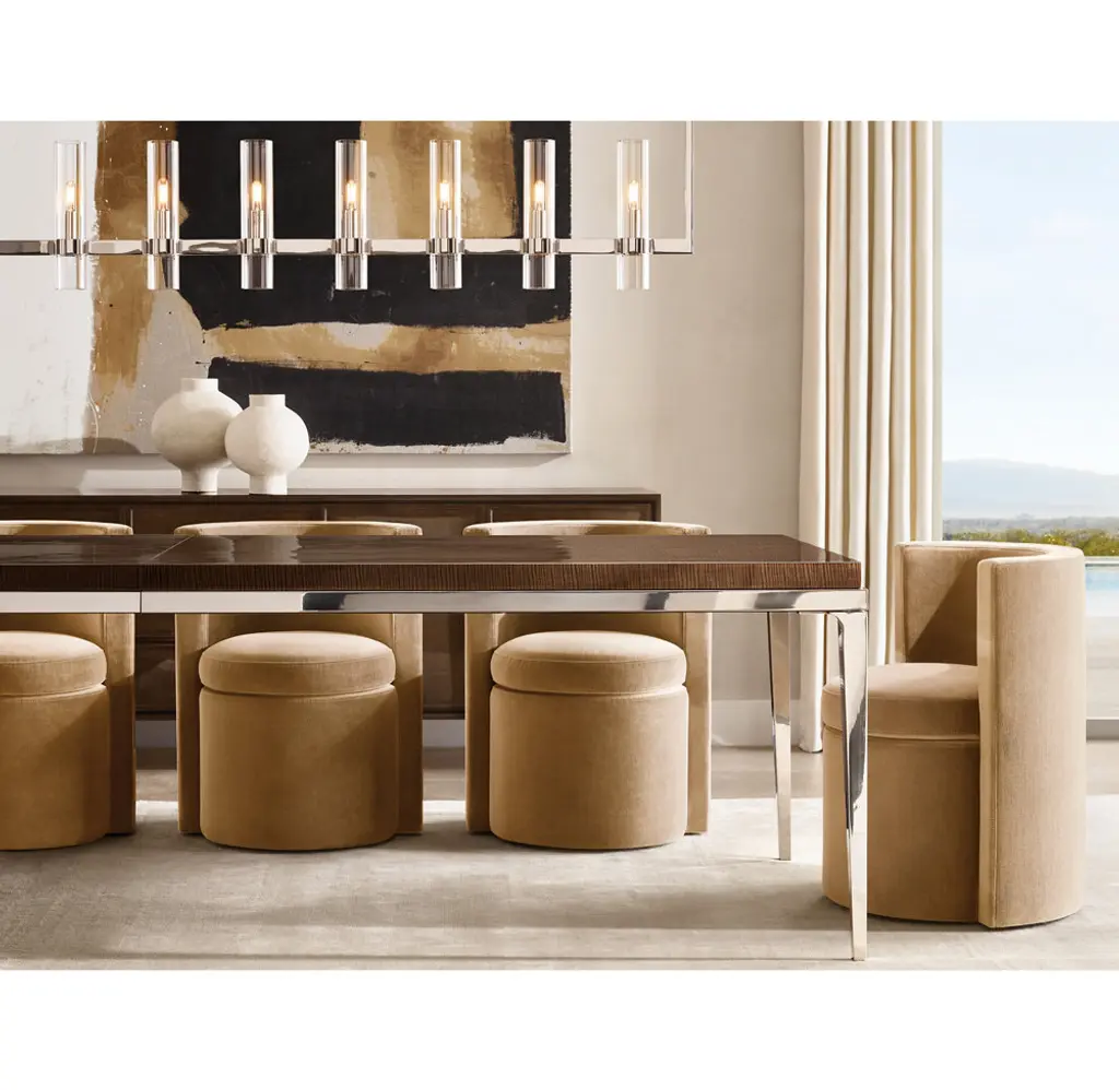 Art Deco forms are reimagined with a modern minimalist sensibility in this collection from renowned lighting designer Ian K. Fowler. Crafted of solid steel, unadorned metal bands hold the slender glass cylinders in place, in a state of perfect equipoise. Within each, Edison bulbs glow like flickering candles. SHOP THE ENTIRE COLLECTION
