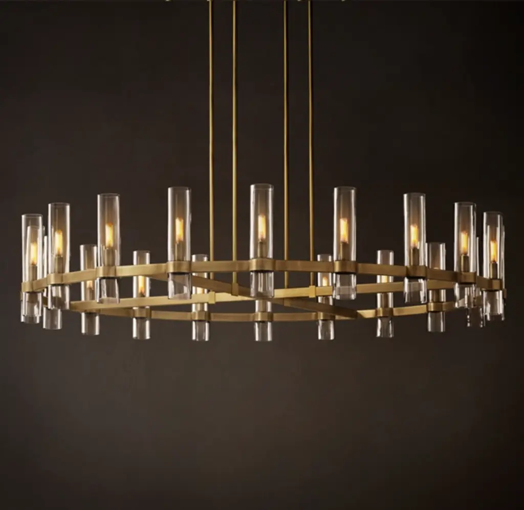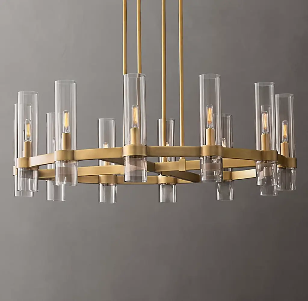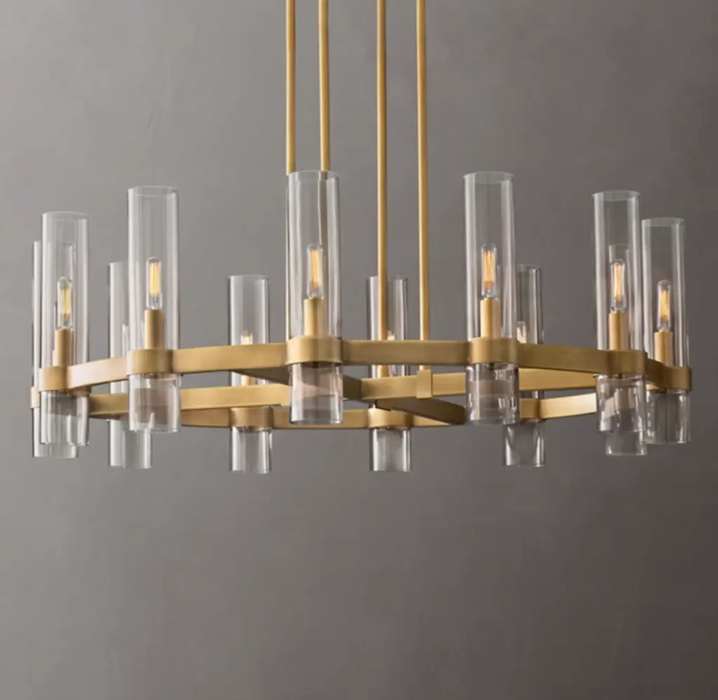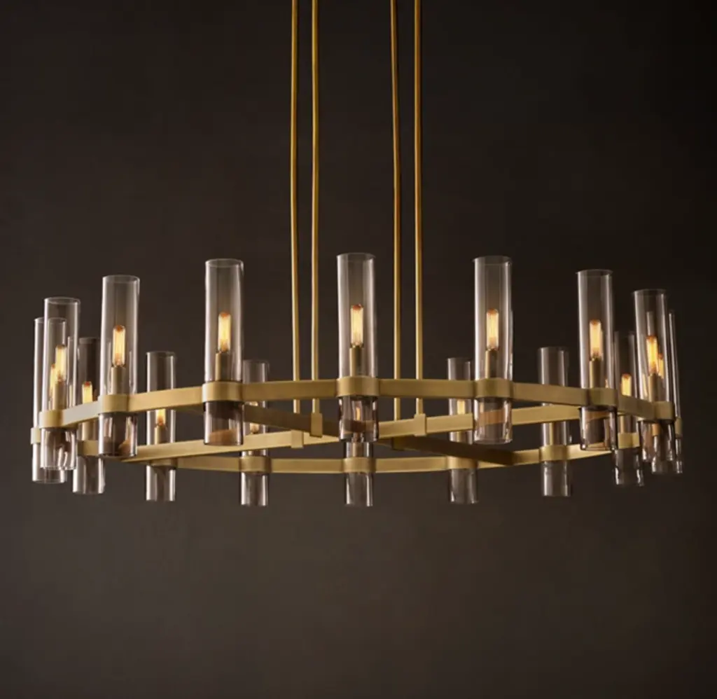Art Deco forms are reimagined with a modern minimalist sensibility in this collection from renowned lighting designer Ian K. Fowler. Crafted of solid steel, unadorned metal bands hold the slender glass cylinders in place, in a state of perfect equipoise. Within each, Edison bulbs glow with the warmth of candlelight.ALSO AVAILABLE IN MILK GLASSSHOP THE ENTIRE COLLECTION