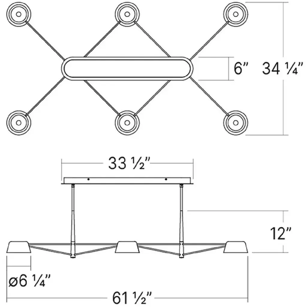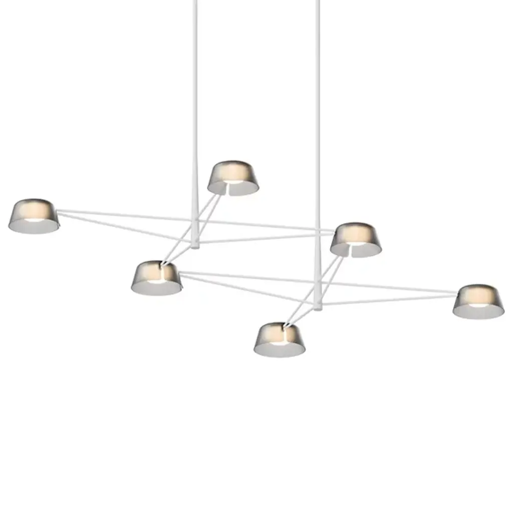 Juxtaposing formal structure with playful geometry, the Ray 6-Light Rectangle Chandelier offers an inventive array of LED luminaires with delicate arms and soft shades that come together to create a modernist statement piece. The chandelier design geometrically spaces light evenly around a space. Ray Chandeliers include a stem kit that allows the fixture to be installed at various hanging heights.