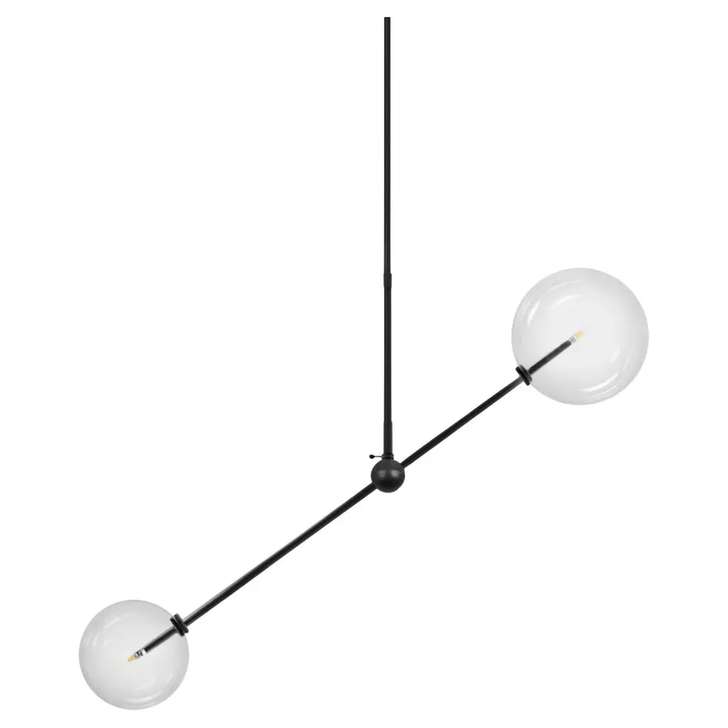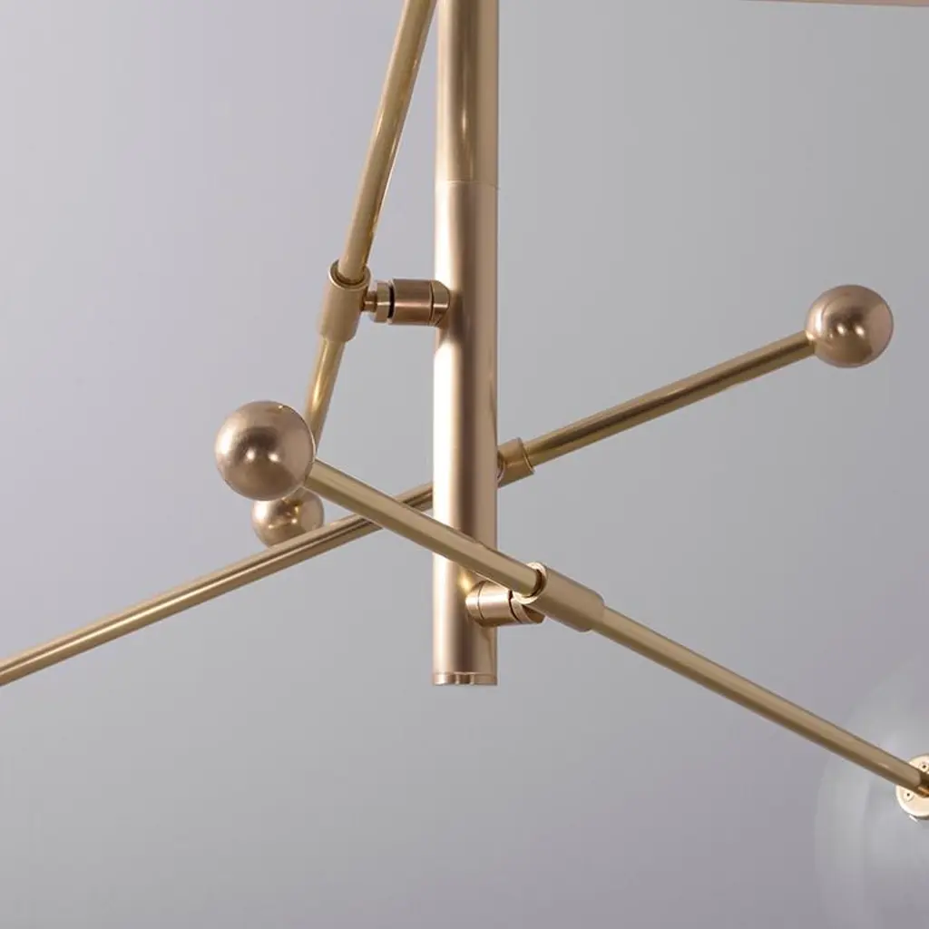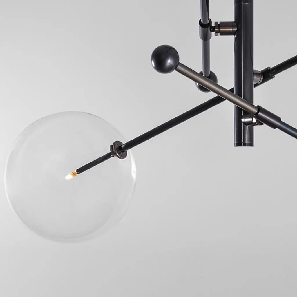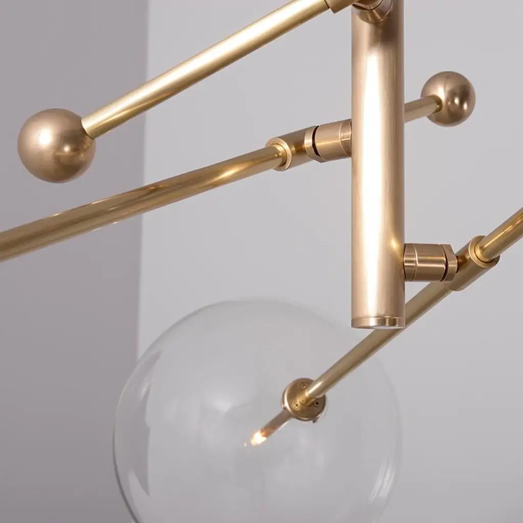 Polished Nickel 3 arm chandelier by Schwung Dimensions: W 97.8 x D 97.8 x H 53 cmMaterials: Solid brass, hand-blown glass globesLamp: 3 LED 1,6WExtension Rods: 1 x 15.24, 1 x 27.9 cm, 1 x 43.2 cmmax wattage 20W / 1.6Wbulb base G4, 12V AClumens 600lmcolor temperature 2700kFinish: Polished Nickel. Also available in finishes: Natural Brass or Black Gunmetal. All our lamps can be wired according to each country. If sold to the USA it will be wired for the USA for instance. Made entirely of solid brass and handblown glass globes. Extension Rods included. Could be dimmable. Schwung is a German word, and loosely defined, means energy or momentumm of a positive manner. Synonyms: verve, zest, panache, momentum.MissionDeveloping lighting fixtures through simple and timeless materials, sustainably; We are committed to creating quality products that last. Beginning with the design we are constantly refining aesthetic and function. Both in the lamps themselves and throughout the manufacturing process we pursue a holistic approach to efficiency, and the reduction of environmental impact.ConceptSchwung is a lighting concept, connecting aesthetic and quality through matter. An exploration of history, forms and function, elegantly fulfilling an essential need of modern life, capturing light. Our pieces play with architecture or create spaces of their own. Founded by Dominique Sente (Belgium) and Rudi Nijssen (Netherlands). What began as a curiosity for objects, a venture in collecting, curating and trading antiques—became a passion to create original designs.ProcessFrom the beginning, Schwung home has striven for cutting-edge and quality lighting, handcrafted in Europe. Emphasising brass and glass, which are not only durable but can be reused indefinitely, our lamps are 98% recyclable. Today the company operates out of an integrated design and manufacturing facility in Poland. This local approach allows us to significantly shorten the product lead time and greatly improve quality standards.All our lamps can be wired according to each country. If sold to the USA it will be wired for the USA for instance.