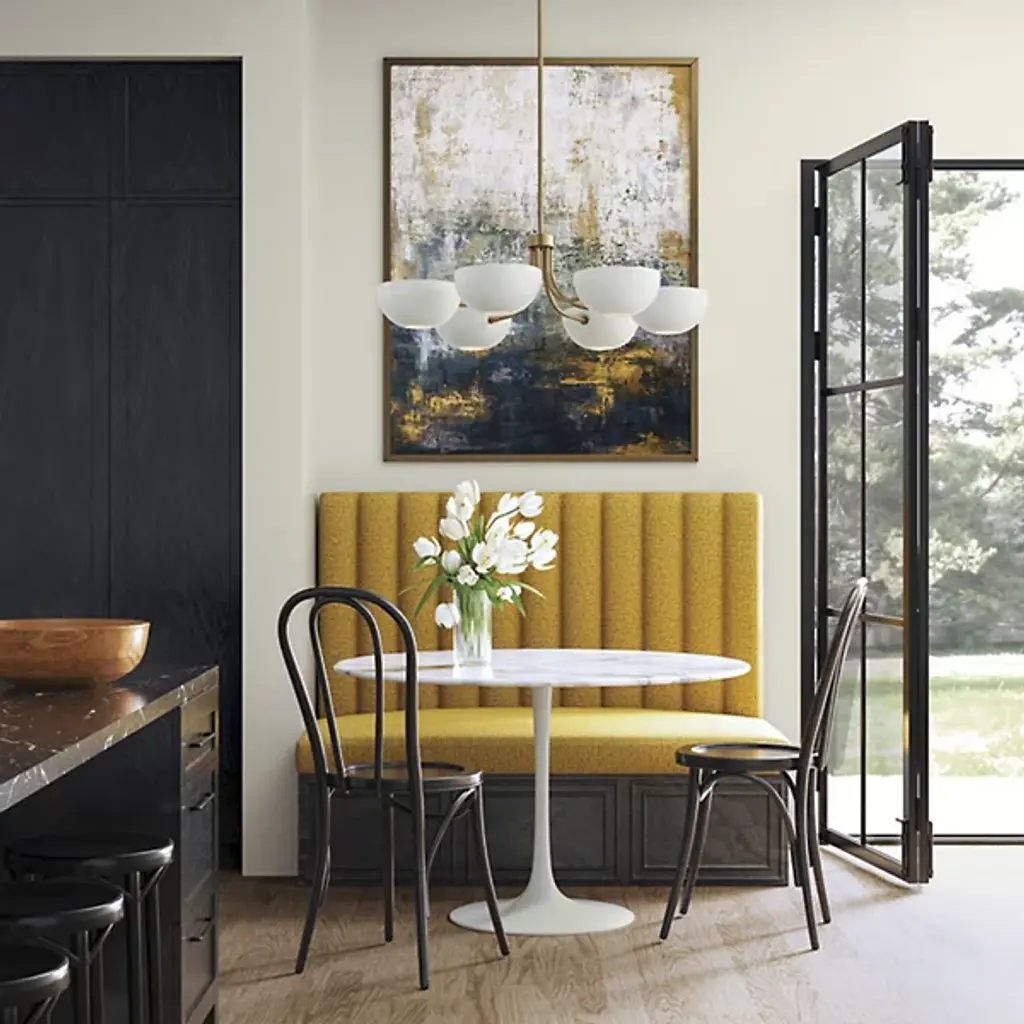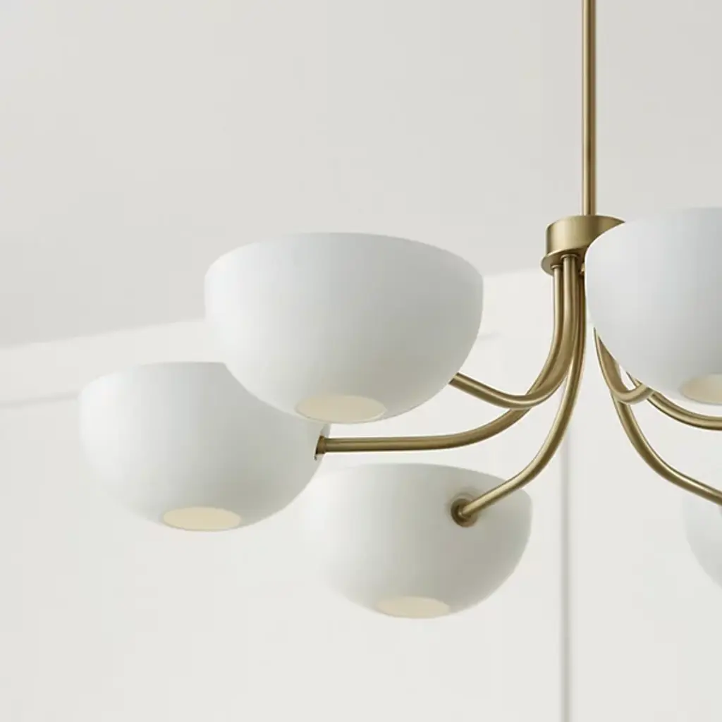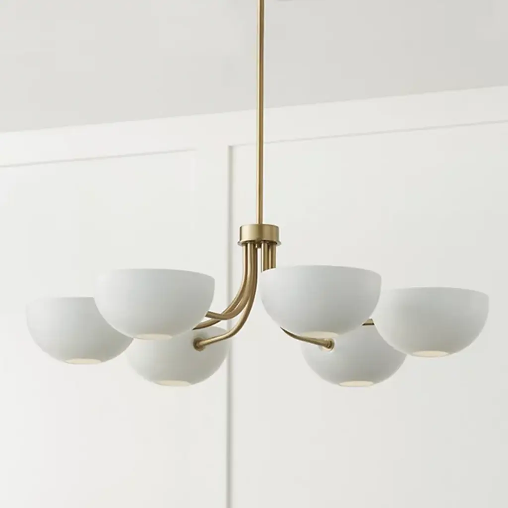Introducing the Reece Chandelier from Capital Lighting, blending a classic aesthetic with a hint of retro flair. The smooth finish, paired with Aged Brass details, creates a timeless yet stylish design. The rounded metal shades are adjustable, which allows you to cast the perfect ambient glow by turning them up or down. Illuminate your space with a touch of nostalgic charm and modern versatility, courtesy of the Reece Chandelier.